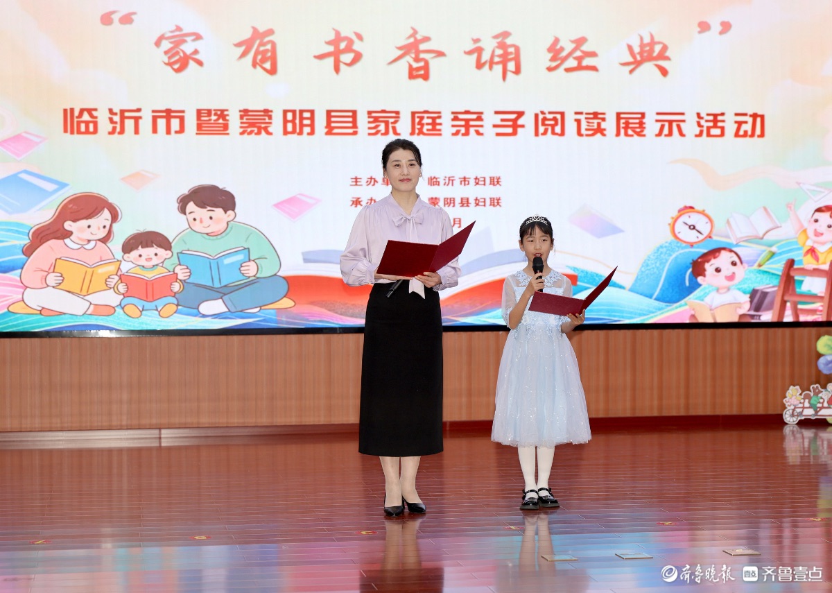 4月25日,“家有书香诵经典”临沂市暨蒙阴县家庭亲子阅读展示活动在蒙阴县举办。 活动在童声合唱《夜空中最亮的星》中拉开序幕,亲子诵读《书香临沂,你听我说》温情上演。现场先后为“亲子共读一本书”优秀家庭代表、蒙阴县“书香润万家”亲子绘本展演获奖者颁奖,为临沂市家庭亲子阅读推介官代表颁发星徽。