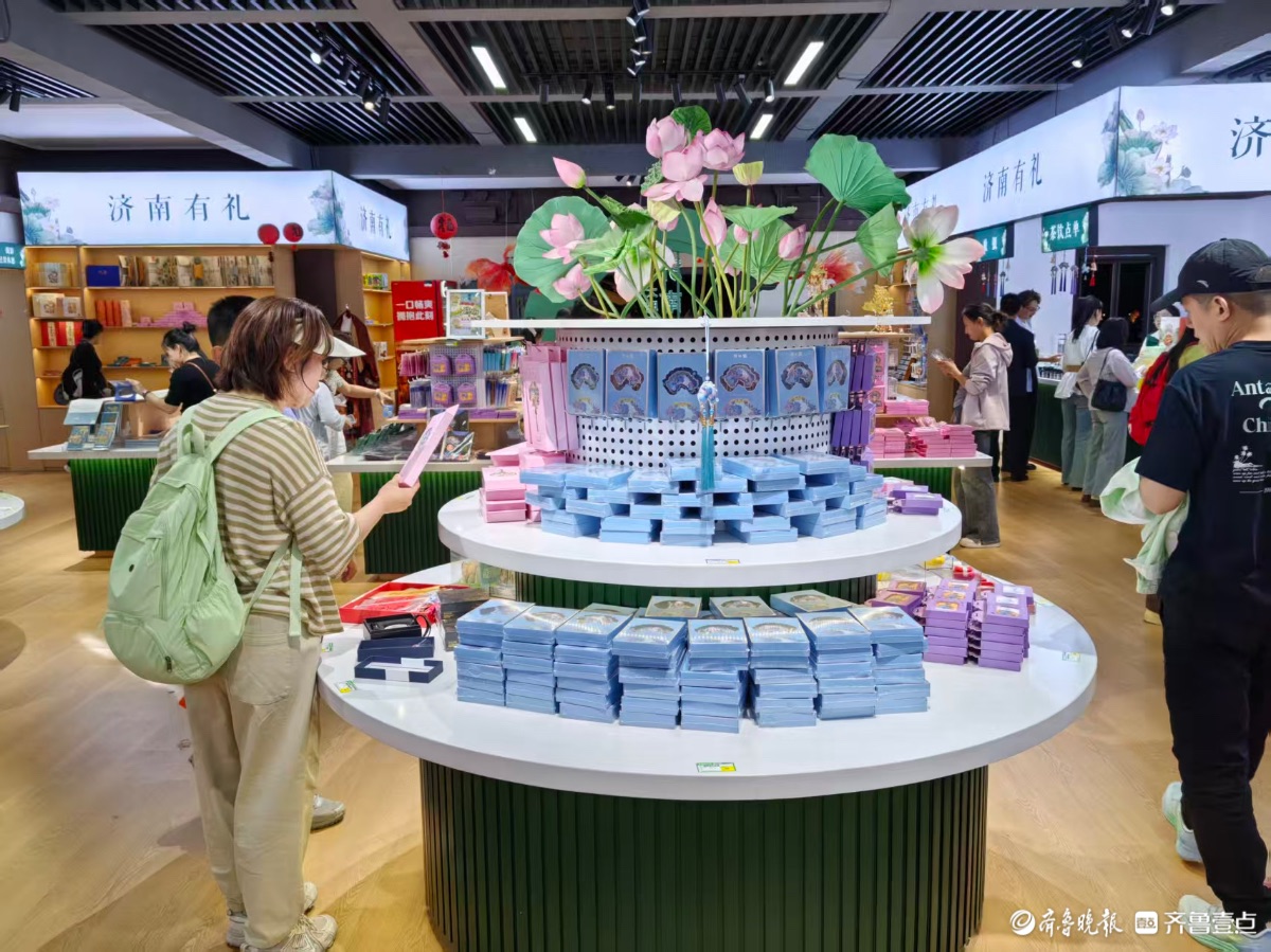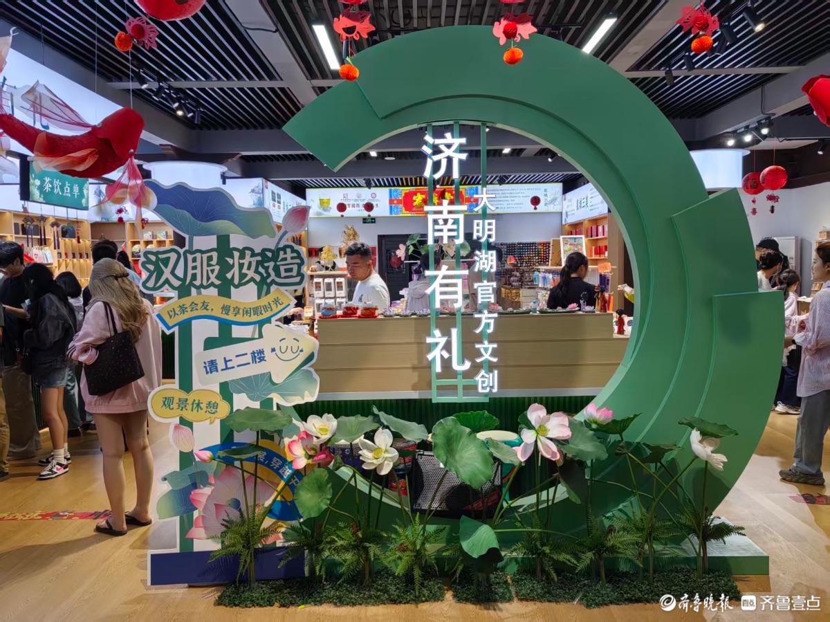 大明湖畔的济南有礼文创店,藏着泉城的别样浪漫。店内荷韵元素装点其间,红笼高挂暖意融融。琳琅满目的文创好物整齐陈列,古风人偶精巧灵动,特色周边尽显巧思。游人穿梭其间,挑选心仪伴手礼,邂逅济南的文化印记。这里将泉城底蕴与新潮创意相融,让每一件文创,都成为传递济南风情的美好载体。王平摄