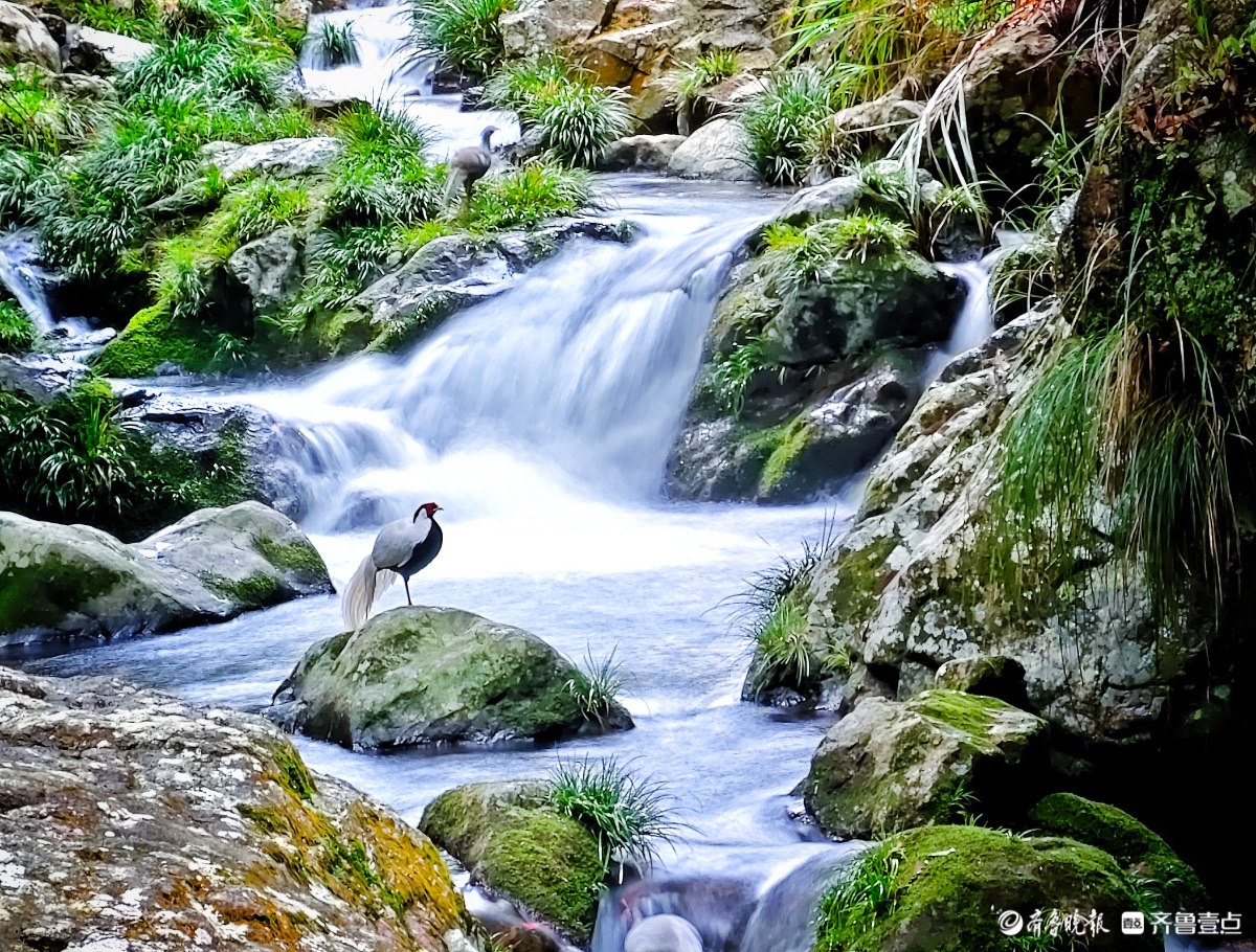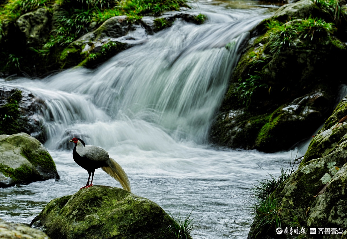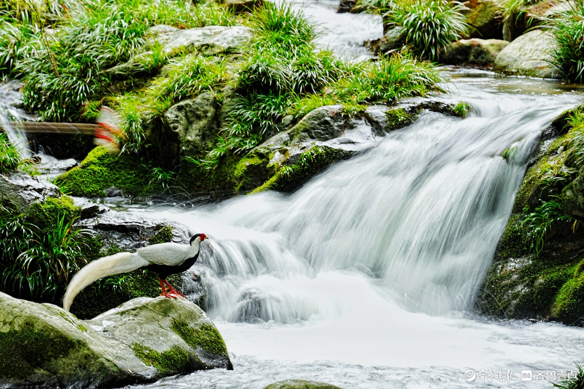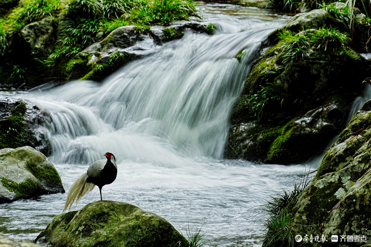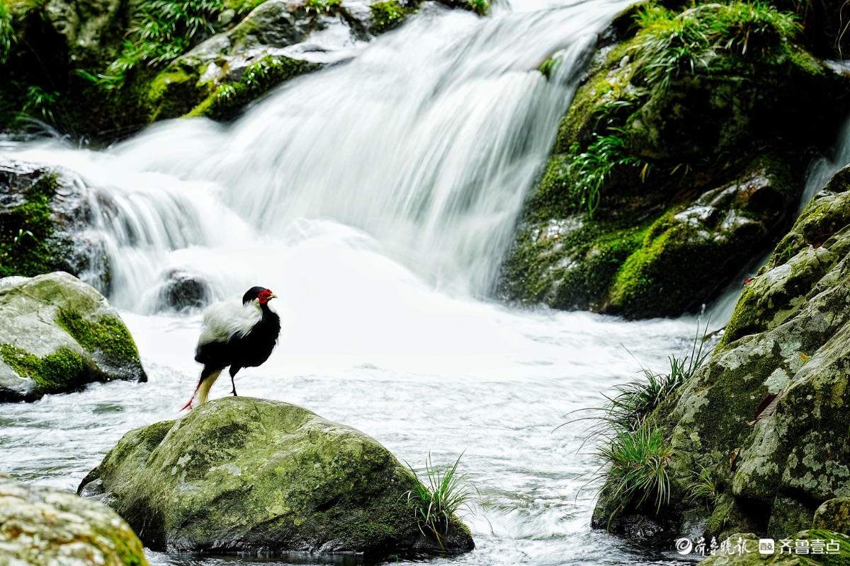 福建永安丰田村,白鹇与瀑布