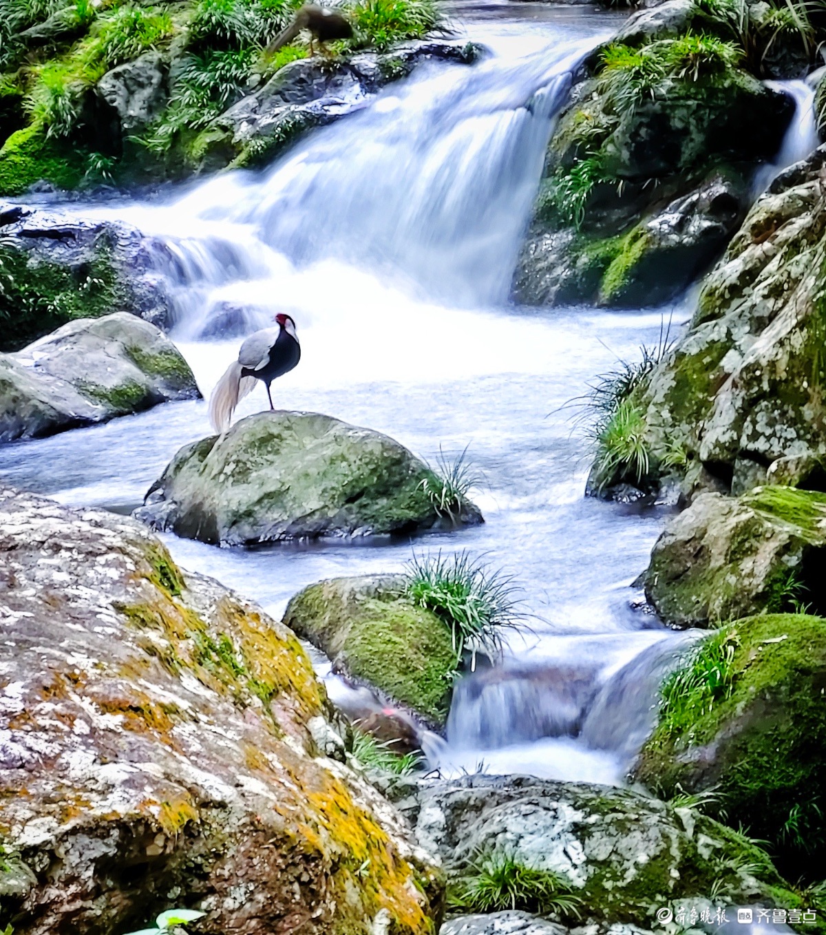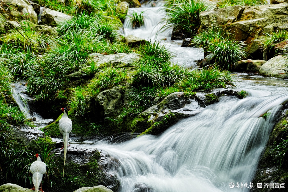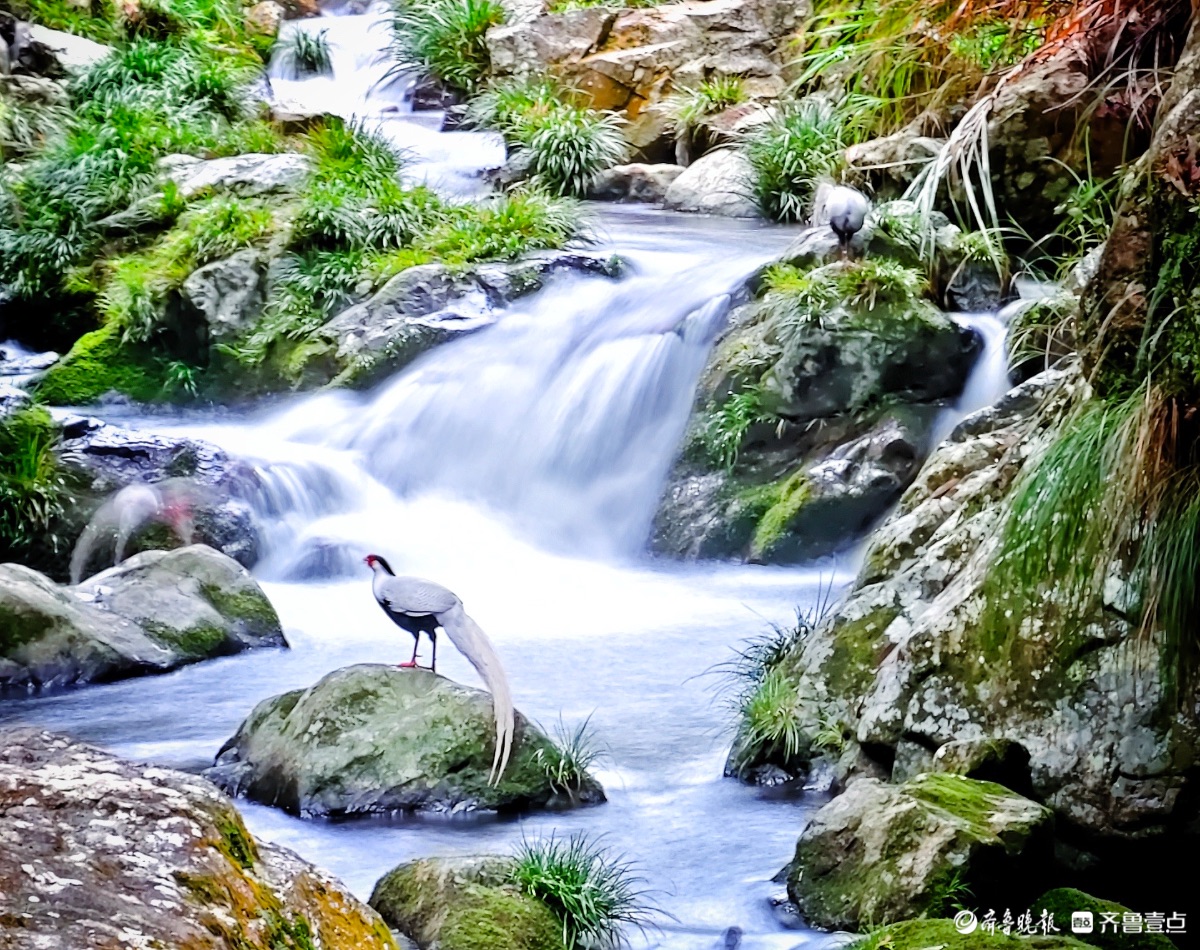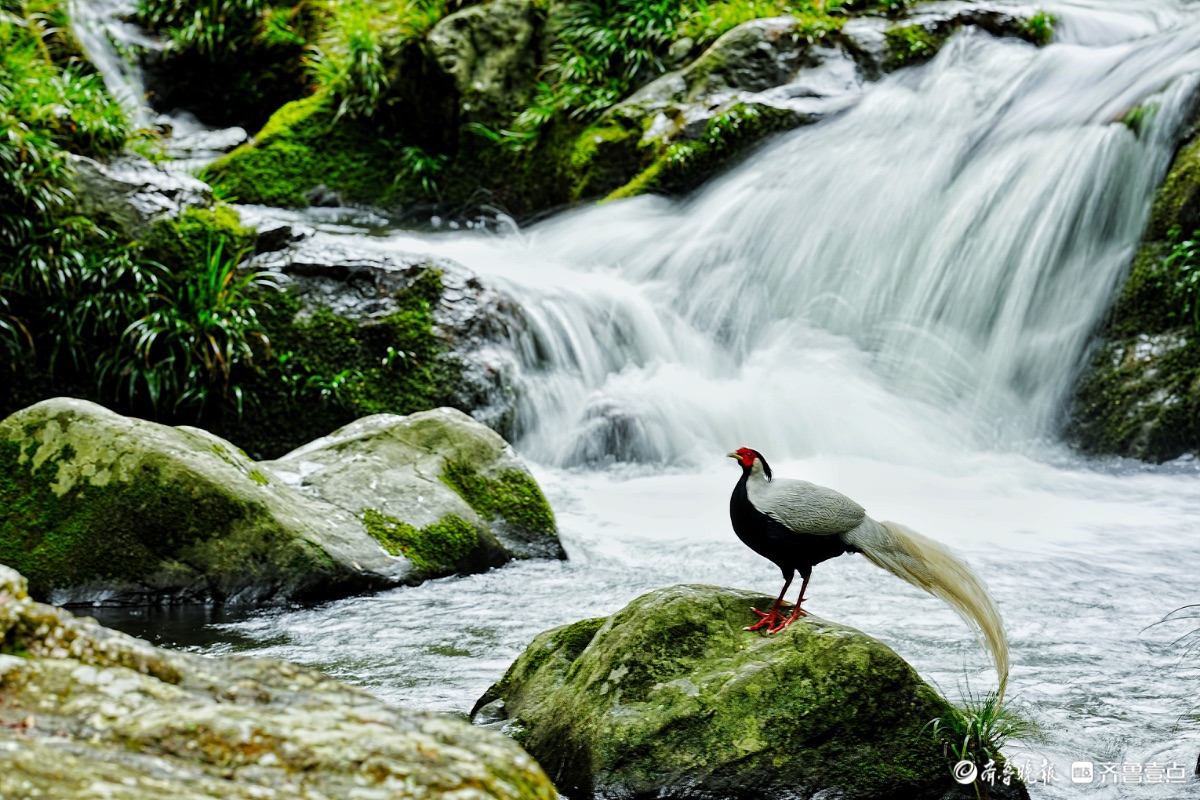 福建永安丰田村,白鹇与瀑布