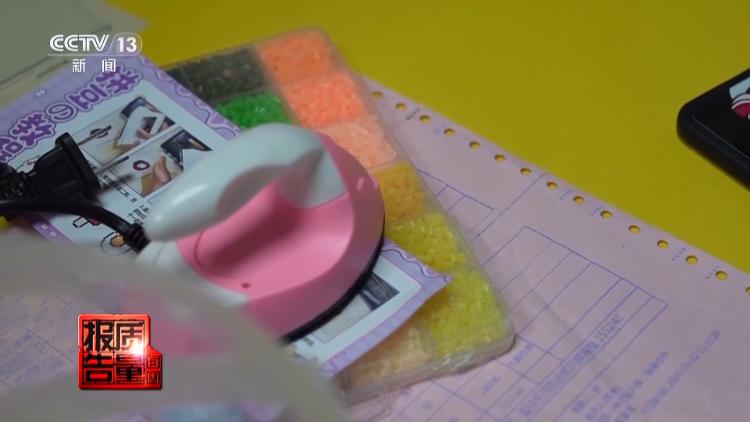 中国消费者协会新闻部 牛畅:我们提醒各位家长,要把拼豆产品放在儿童接触不到的地方。拼豆的颗粒特别小,3岁以下婴幼儿严禁接触,防止孩子误食后呛到或者噎住造成窒息。家长还要注意,在儿童熨烫拼豆时一定要全程陪同,指导孩子正确操作,避免烫伤、触电等意外发生。