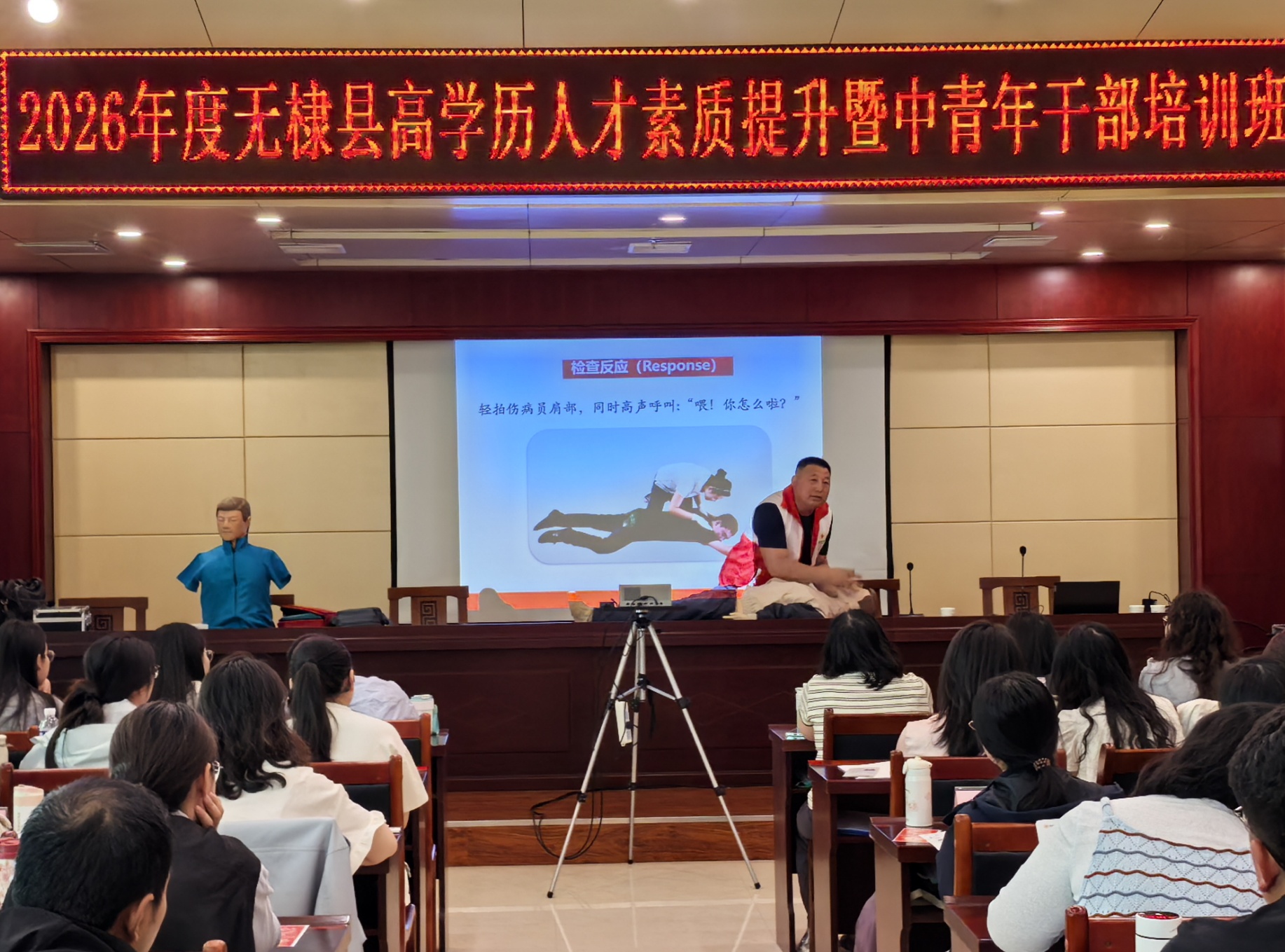 为提升高学历人才暨中青年干部应急处置能力,筑牢生命安全防线,4月24日,无棣县红十字会走进县委党校,为2026年度无棣县高学历人才素质提升暨中青年干部培训班开展应急救护知识专题培训。