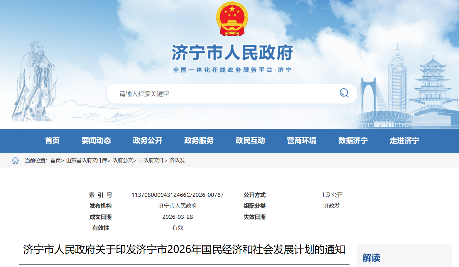 济宁市2026年国民经济和社会发展计划公布