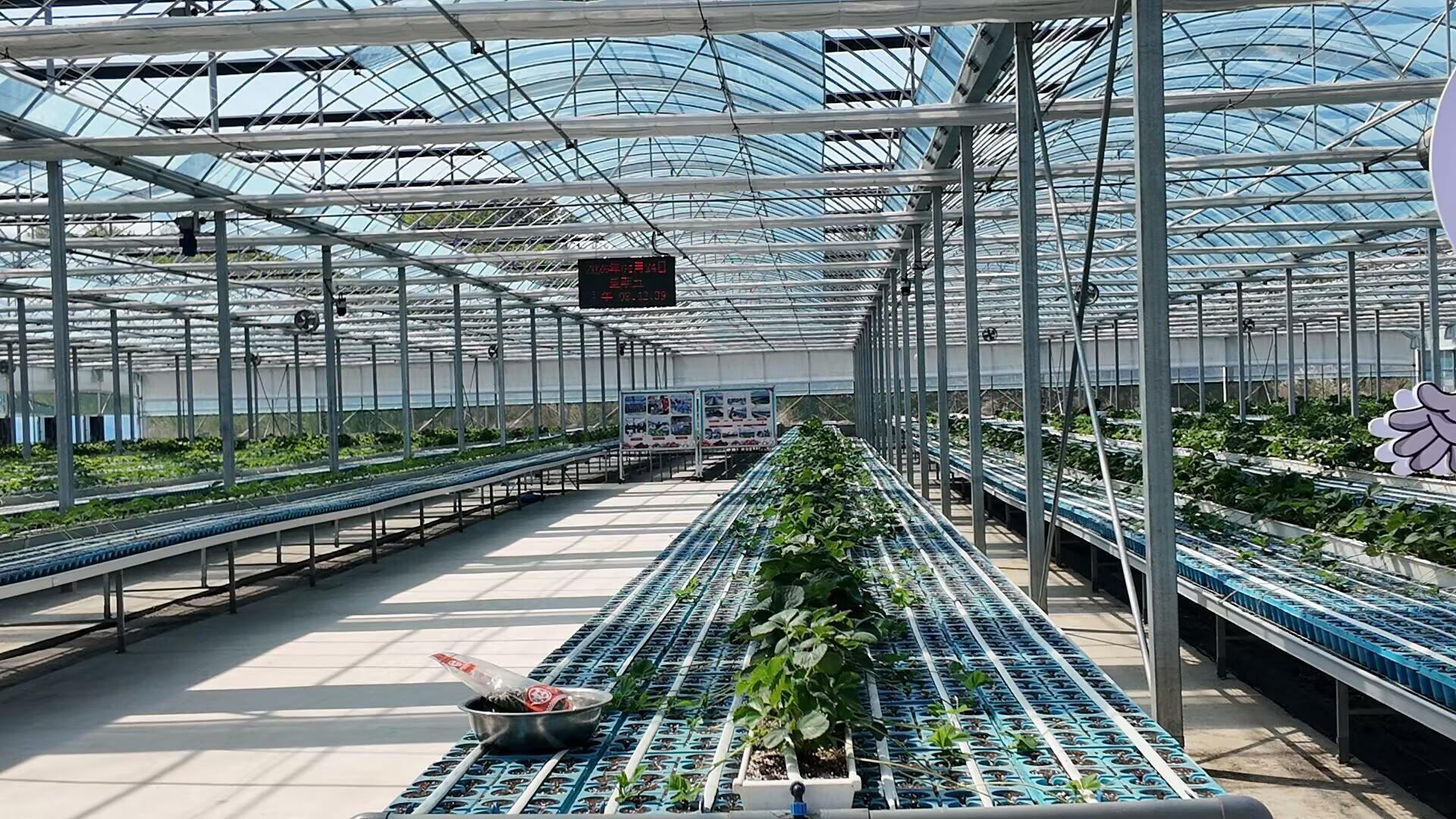 “这种技术,学名叫AGLIS高架无土栽培,是从日本那边学来的。”指着蓝色的盘子,王磊介绍:“我们的草莓不是长在地里,而是长在特定的穴盘上。”