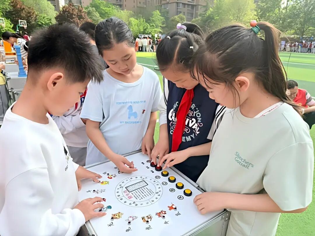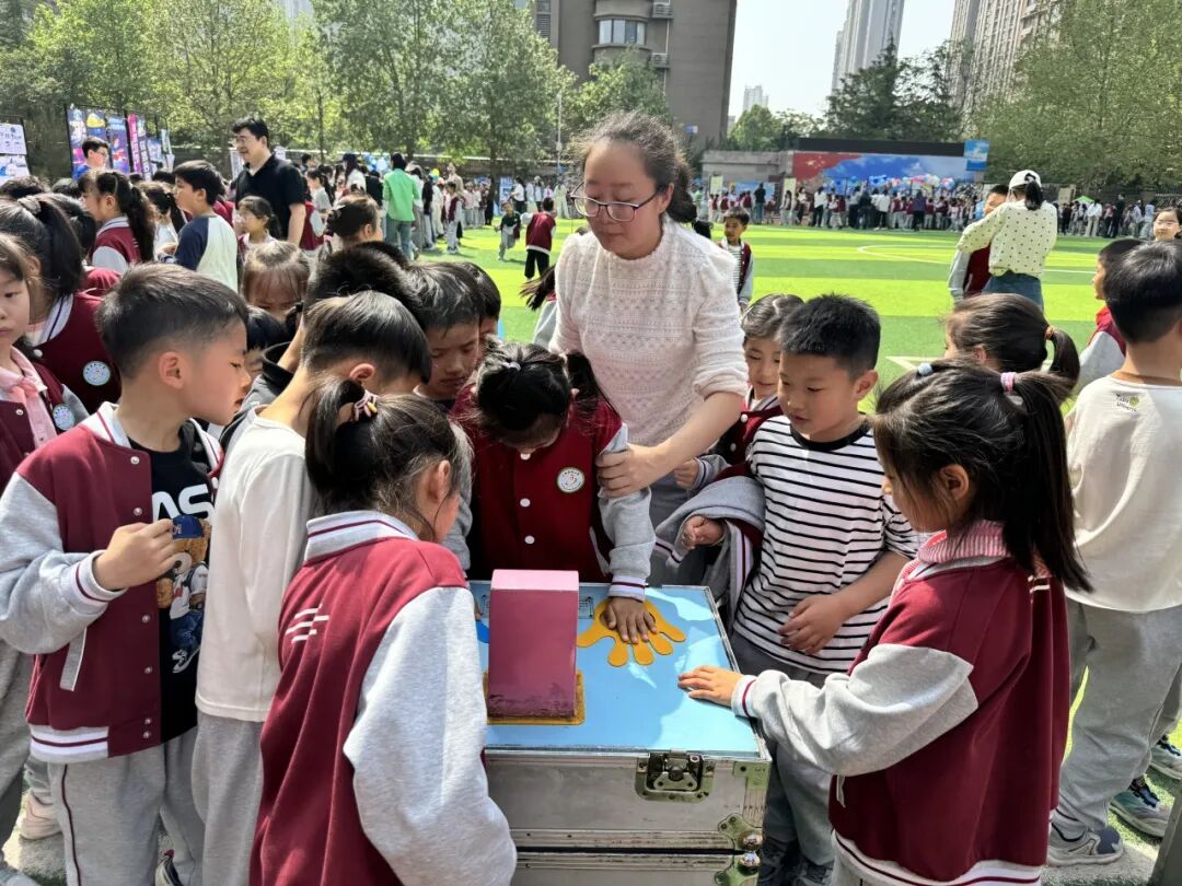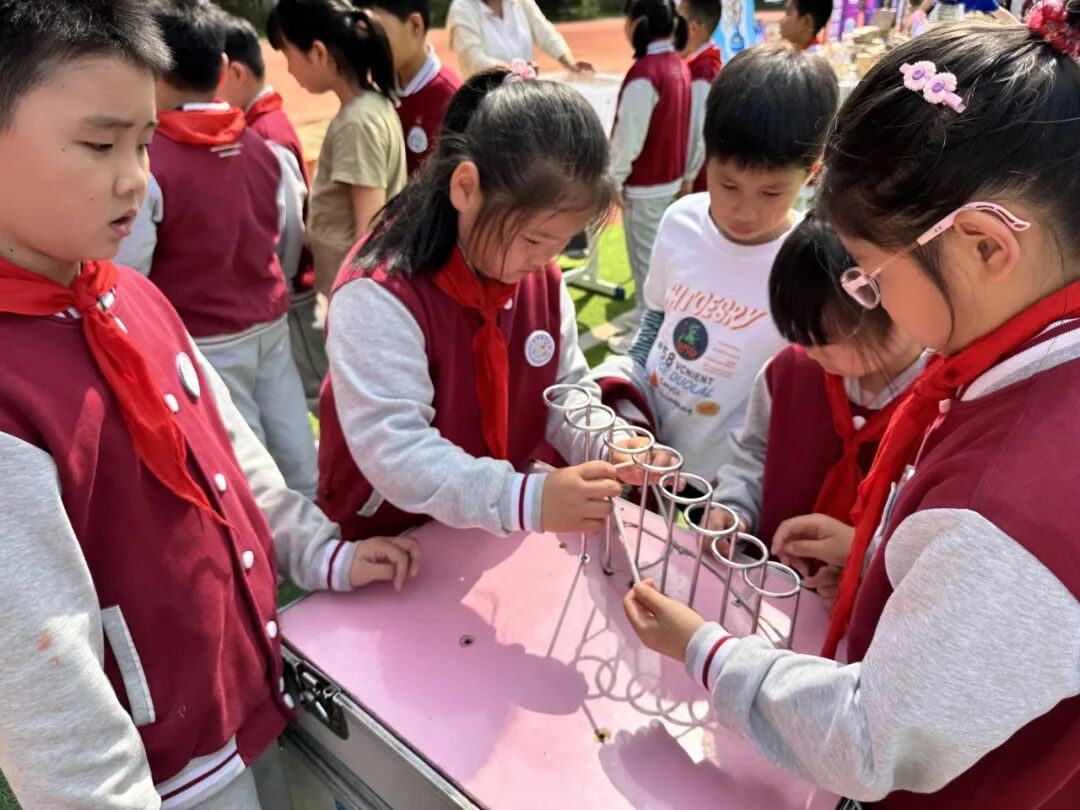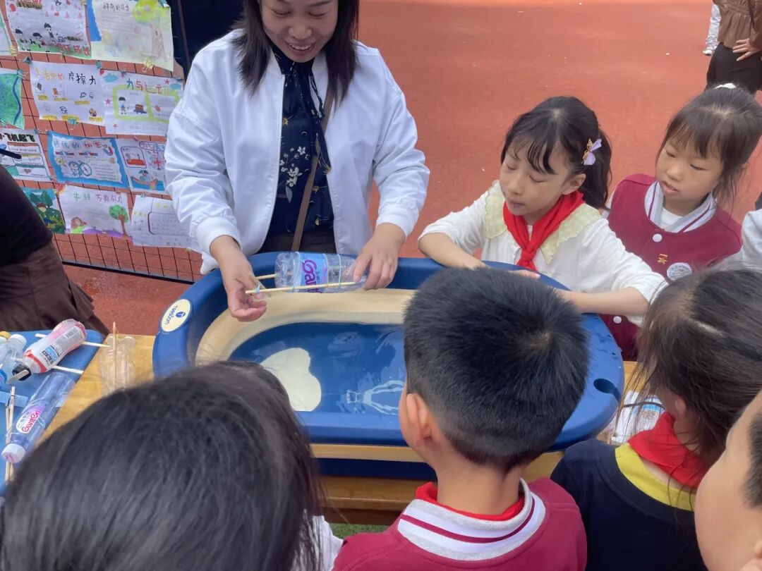 展区还精心准备了互动游戏,蒙眼猜物妙趣横生,学生凭借触觉与听觉辨别物品,充分调动感官;套人泡泡圈梦幻又欢乐,大家在游戏中尽情欢笑,体验别样乐趣。