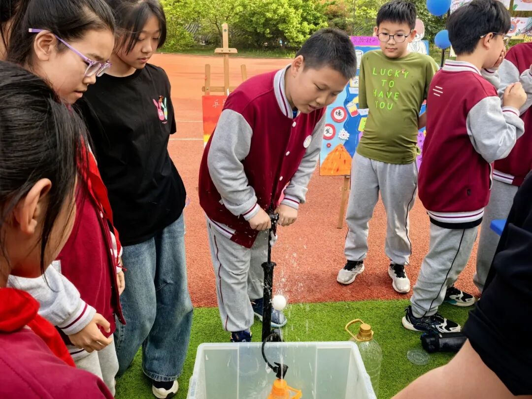 活动现场趣味十足,虹吸现象、空气炮、玻璃弹珠轨道滑行、潜水艇沉浮、火山喷发等科学实验轮番上演,同学们在直观体验中感受科学奥秘。此外,现场还设置了趣味手工制作环节,大家动手又动脑,沉浸在科学探索的乐趣里。