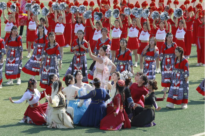 基础医学院团体操《同心共舞·民族华章》,学子们以民族团结、同心奋进为内核,汇聚多民族经典歌舞元素,生动诠释了各民族像石榴籽一样紧紧抱在一起,这不仅是一场艺术的礼赞,更是铸牢中华民族共同体意识的生动实践。