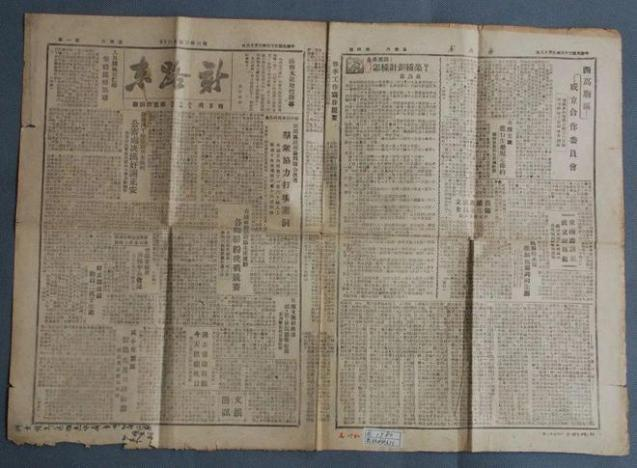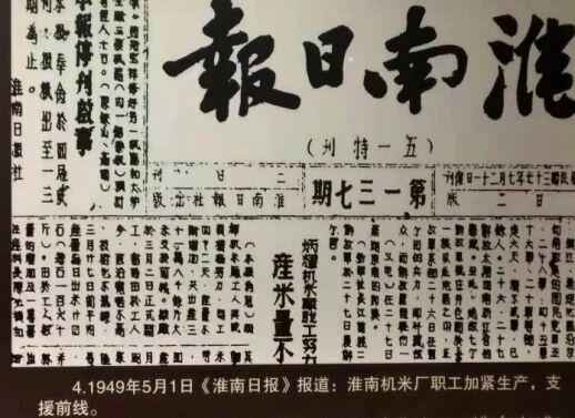 1948年7月,江淮一地委决定恢复出版《淮南日报》。图为1949年5月1日出版的《淮南日报》(摄/谢超群)