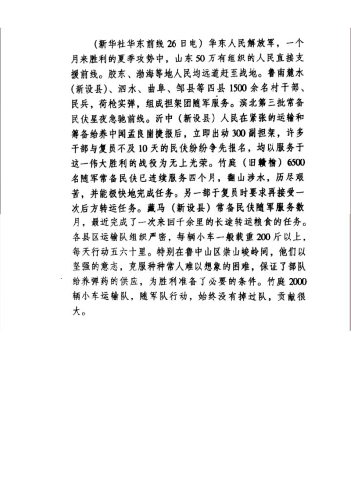《山东五十万有组织的人民支援前线》原文
