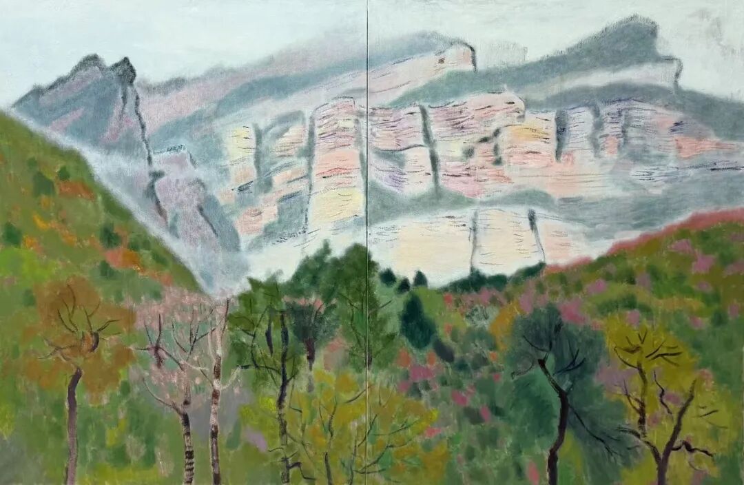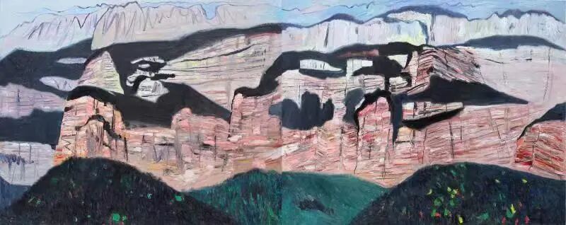 《太行雄壁-嶂石岩》 布面油画 160×200cm×2 2017
