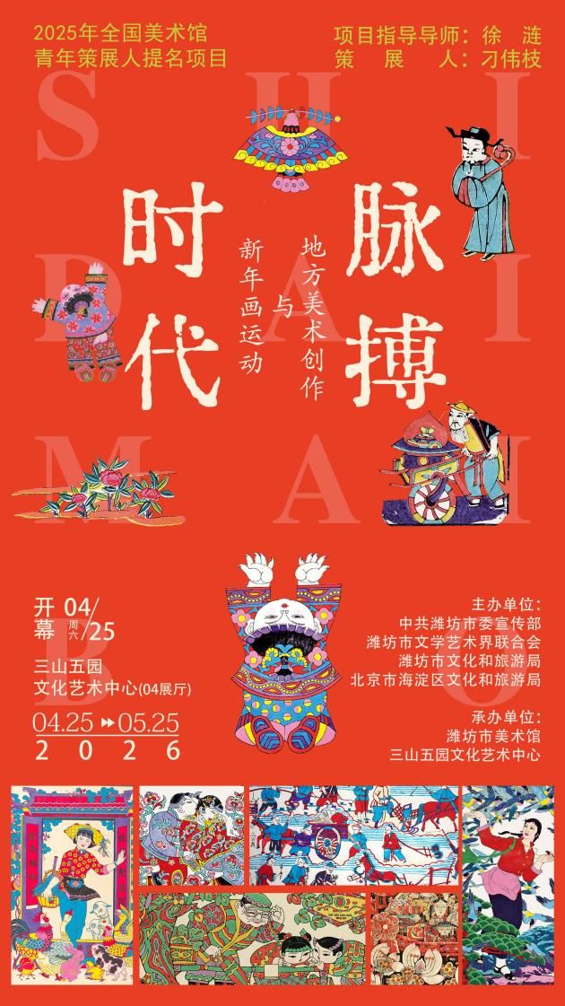 2025年全国美术馆青年策展人提名项目《时代脉搏——新年画运动与地方美术创作》进京展,于2026年4月25日在北京三山五园文化艺术中心正式开幕。本次展览由中国国家画院副院长徐涟担任项目指导导师,潍坊市美术馆刁伟枝策展,是潍坊新年画创作的一次综合性成果巡展。
