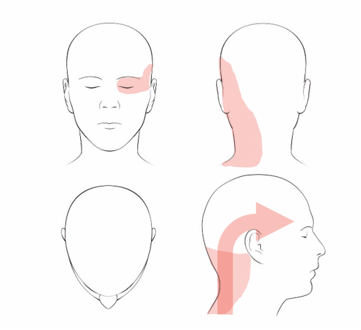 1.疼痛路径明确:从后颈/发际线开始→头顶/太阳穴→眼眶周围。