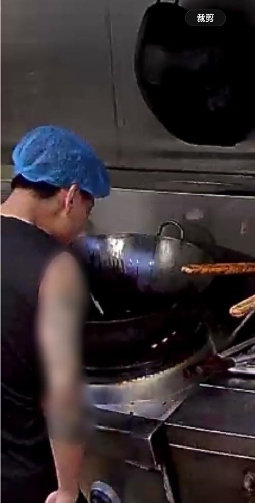 视频还拍下工作人员疑似往锅里吐口水(冯先生录屏截图)