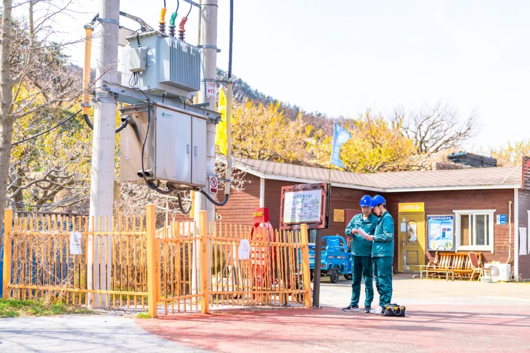 ▲国网青岛供电公司工作人员加强对景区周边的供电设备巡视。杨文昌/摄