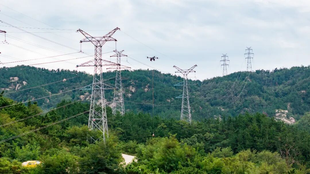 ▲国网青岛供电公司使用大载重无人机开展检修工器具吊装工作。杨文昌/摄