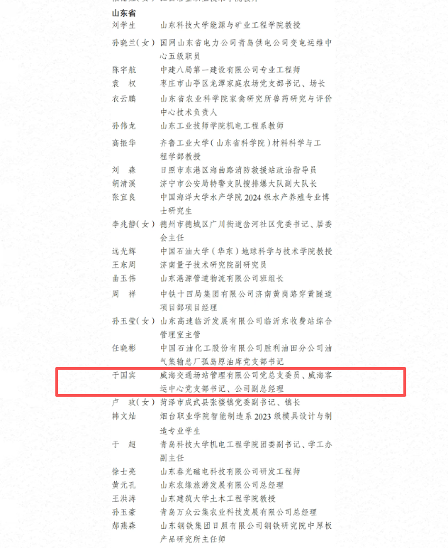 4月27日,2026年度中国青年五四奖章暨新时代青年先锋奖评选结果揭晓。共青团中央、全国青联决定:授予支德源、古再丽努尔·阿布拉、刘臣等29名同志中国青年五四奖章;授予上海“模速空间”大模型创新生态社区青年团队、75220部队42分队、中国铁路西安局集团有限公司西安铁路物流中心国际港营业部“丝路青锋”青年团队等30个青年集体中国青年五四奖章集体;授予刁新宇、马新建、冯兆民等749名同志新时代青年先锋。其中,威海1人入选新时代青年先锋。