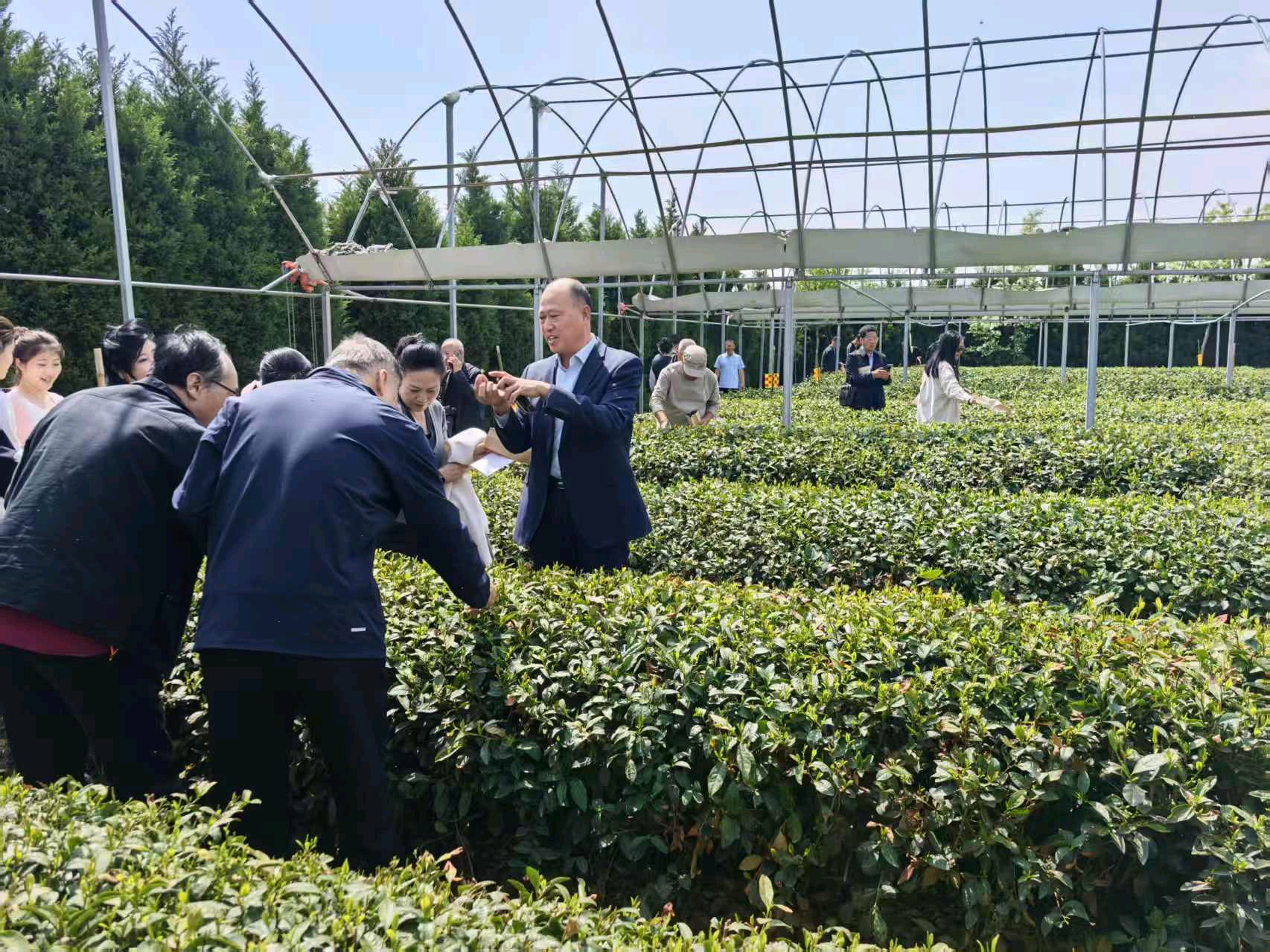 随后,与会人员走进茶叶文化馆,观赏精湛茶艺表演,观摩传统手工炒茶技艺,并一同品茗交流,沉浸式感受甘泉岭茶的清香与醇厚。接着前往生态茶园,在专业师傅指导下开启沉浸式采茶体验,领略“南茶北引”造就的北方茗茶独特风情。