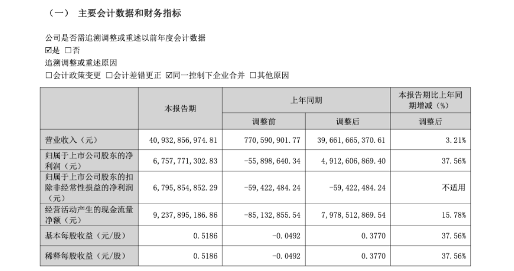 宏桥控股4月24日晚间发布的2026年一季报显示,公司第一季度实现营业收入409.33亿元,同比增长3.21%;归属于上市公司股东的净利润为67.58亿元,同比增长37.56%。