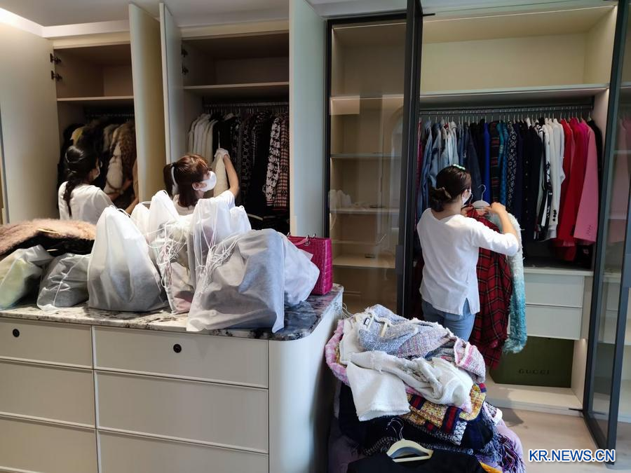 지난 2월 란저우시 한 고객의 집에서 나이단 팀원들이 옷을 정리하고 있다. (사진/신화통신)