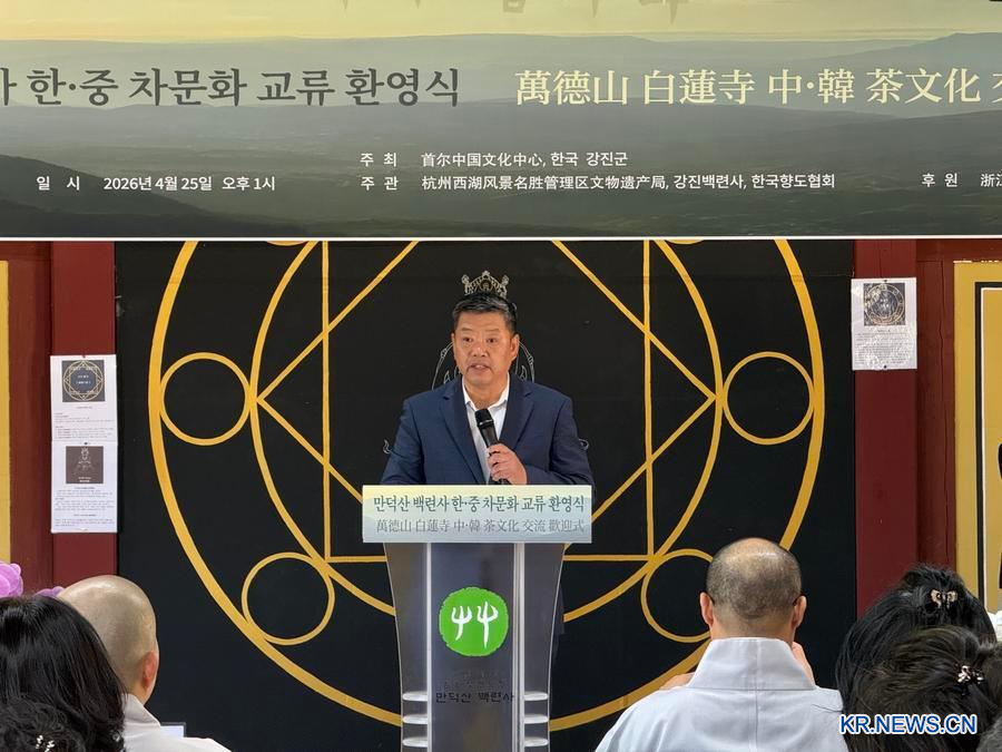 [신화망 서울 4월27일] '차와 천하-아집(茶和天下·雅集)' 중·한 차(茶) 문화 교류 행사가 24~25일 전라남도 강진군 백련사에서 열렸다.