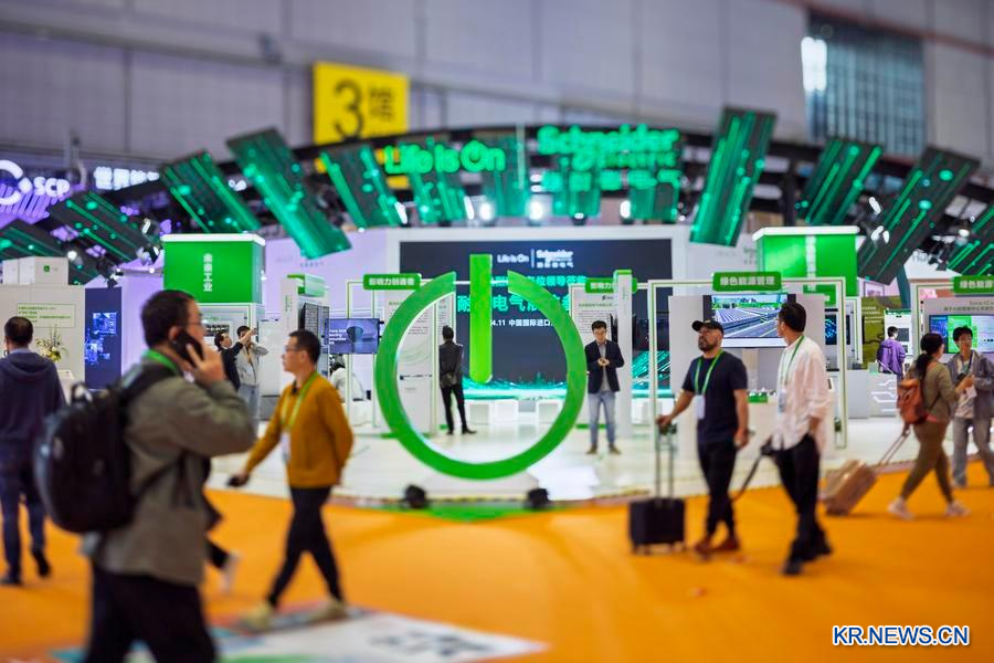 지난 2024년 11월 9일 상하이에서 열린 '제7회 중국국제수입박람회(CIIE)'에 마련된 슈나이더 일렉트릭 전시 부스. (사진/신화통신)