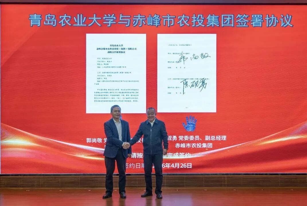 会上,青岛农业大学内蒙古创新研究院正式揭牌。青岛农业大学党委委员、副校长郭尚敬代表学校,分别与赤峰市农牧科学院代表、副院长赵玉山,赤峰市农投集团代表、副总经理陈砚勇签署协议。青岛农业大学食品科学与工程学院院长郑金铠教授被聘为研究院首任院长。校企政多方代表还同时签署了2026年有关合作项目协议。