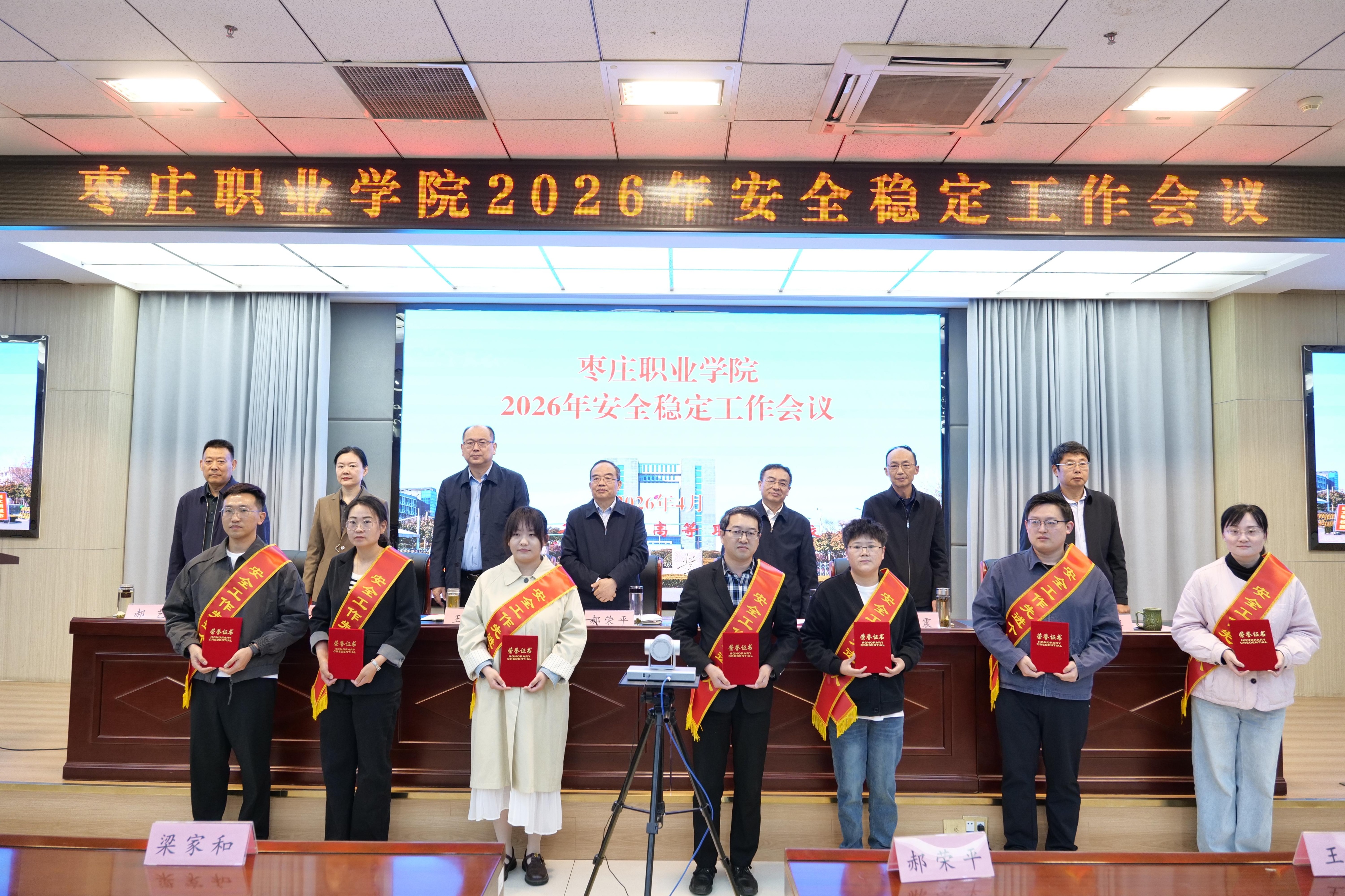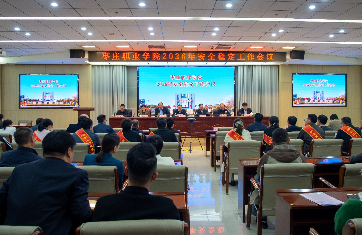4月23日,枣庄职业学院召开2026年安全稳定工作会议。学院领导郝荣平、梁家和、王念、刘希震、张蓝兮、闫博、郝艺出席会议,全校科级及以上干部、2025年度安全工作先进个人代表、校本部部分业态负责人参会;古城校区设分会场,相关负责同志同步参会。