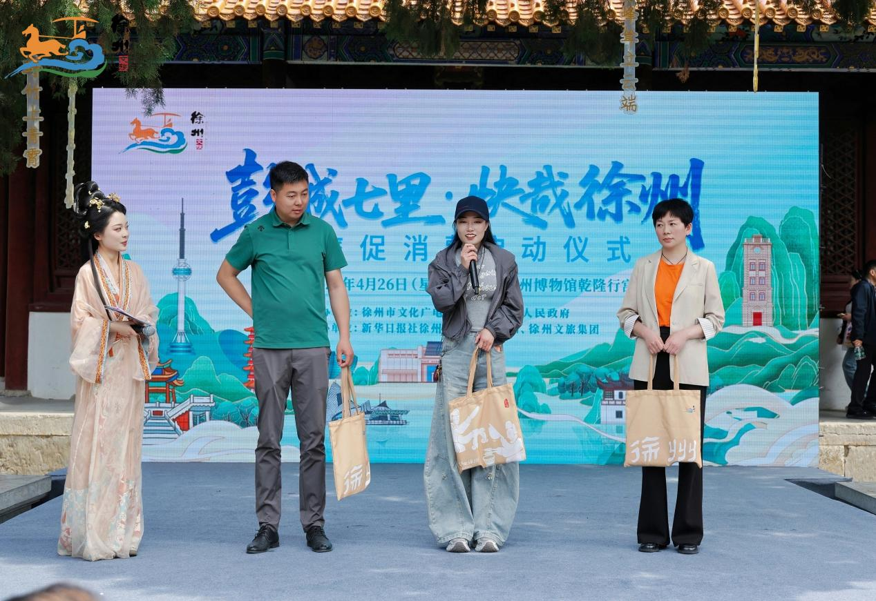 4月26日上午,徐州文旅又带来“加码”礼遇,“彭城七里 快哉徐州”文旅促消费活动在徐州博物馆乾隆行宫前拉开帷幕,徐州文旅推出覆盖吃住行游购娱全链条、总价值超1500万元的惠民“大礼包”,并面向苏皖鲁豫四省小微企业,招募“球迷大礼包”赞助伙伴,让更多商户共享文旅发展红利。同时,面向苏皖鲁豫“彭城七里”推介官招募同步启动——无论是文旅爱好者、达人还是创作者,均可通过图文、短视频讲述徐州故事,入选者将获得官方发布机会及专属采风资格,让四省友人共同为徐州代言。