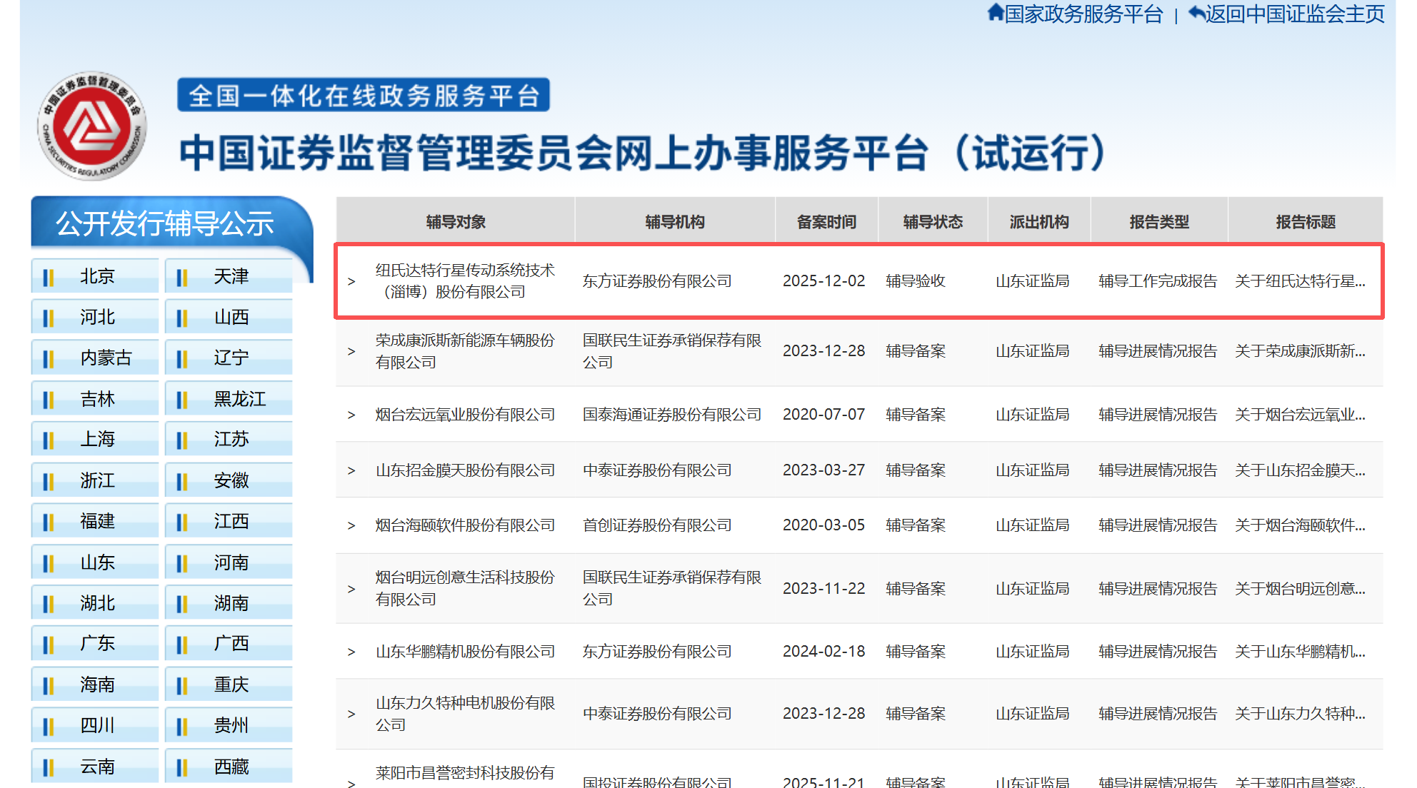 2025年11月28日,纽氏达特与东方证券股份有限公司(下称“东方证券”)签署了辅导协议,并于当日向山东证监局报送辅导备案申请材料,2025年12月2日纽氏达特完成备案,正式进入辅导期。