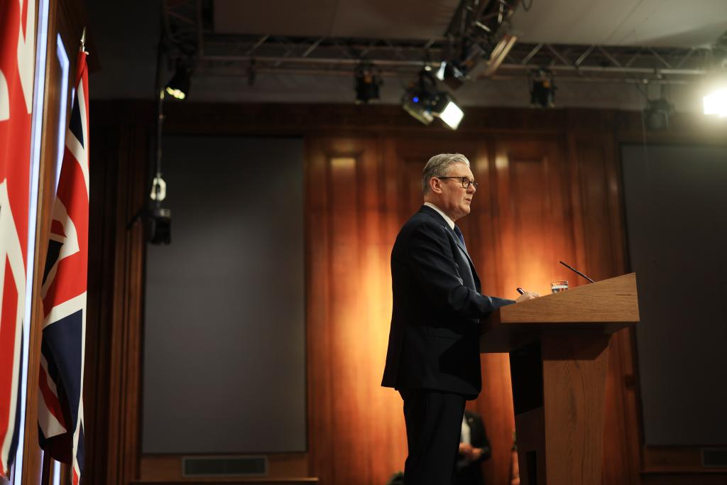 4月1日,英国首相斯塔默参加在伦敦举行的新闻发布会。新华社