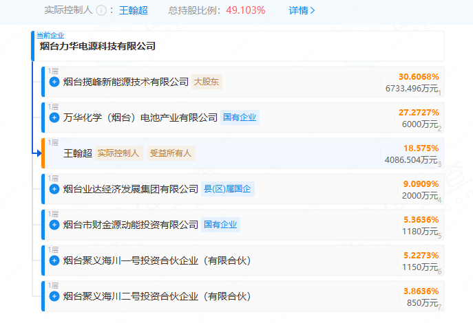 2026年2月,烟台力华电源大股东发生变更,由烟台力华投资合伙企业(有限合伙)变更为烟台揽峰新能源技术有限公司。烟台揽峰新能源成立于2025年9月,注册资本4000万元,法定代表人同样为王翰超。