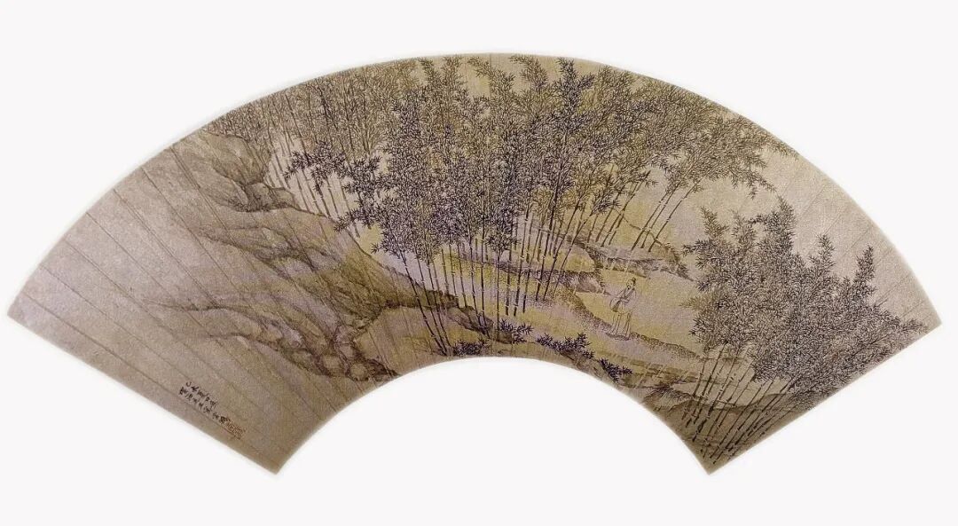 丁云鹏的《竹林漫步图》是一幅绘于扇面上的文人画佳作,以笔墨构建出一方幽静旷远的竹林天地,集中体现了明代文人画追求意境、崇尚隐逸的美学理想。
