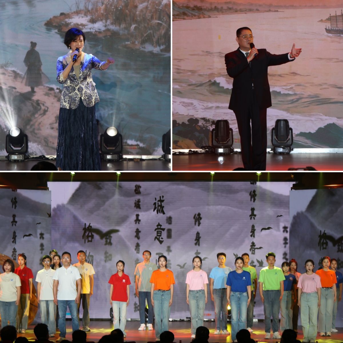 诸多播音朗诵艺术家与学校教师姜竹青、甘超、魏红翠等师生同台献艺,共同呈现了一场兼具艺术高度、思想深度与情感温度的文化盛宴。校党委委员、副校长刘旻航,党委委员、宣传部部长于洪良,相关部门负责人及学院师生代表500余人到场观看演出,线上近8000人次通过直播观看,浏览量超2.7万次。