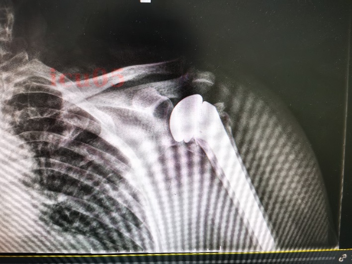 为了确保万无一失,骨一科团队启动了多学科会诊(MDT),联合麻醉科、心血管内科对患者的身体状况进行了全面评估。经过反复的术前规划与讨论,团队决定为患者实施 “人工肱骨头置换术”。该术式相当于为患者量身定制一个“新关节”,用人工假体替换掉粉碎的肱骨头,既能即刻缓解疼痛,又能重建肩关节的稳定性和功能。