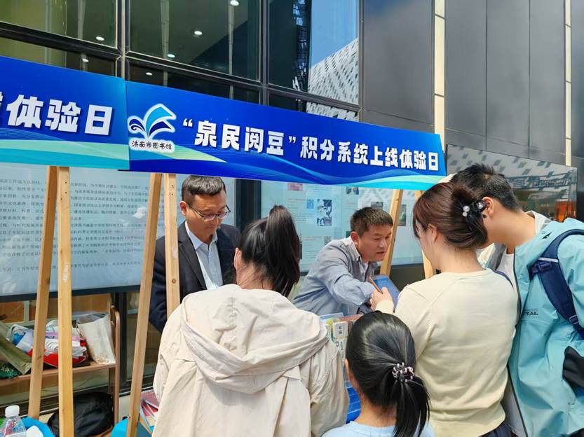 为让读者零距离体验该项目,济南市图书馆于4月24日至26日开展了为期三天的“积分体验日”活动。“积分体验日”活动设置了“体验日上线签到领豆”“电子券零积分兑换”“晒书评·赢阅豆”“积分心愿墙”等活动,让读者实现了零门槛、全流程沉浸式体验。众多读者通过登录“泉民阅豆”积分系统参与“零积分兑换”及各类线上活动成为“泉民阅豆”的首批“种草官”,活动吸引了大批市民驻足体验。本次“积分体验日”活动,共吸引了近千位读者参与,带动市民现场线上办理读者证126个。