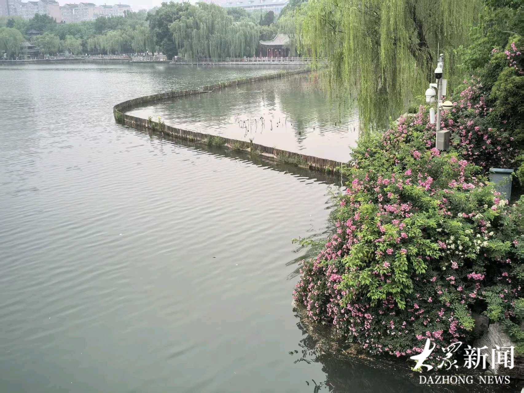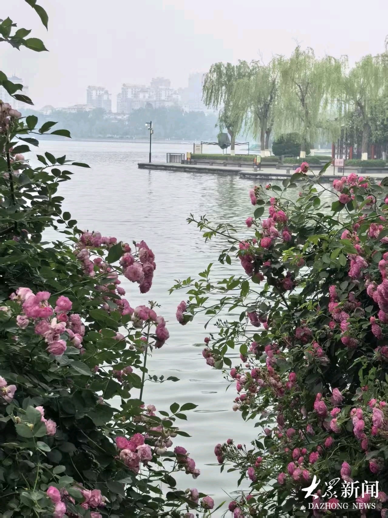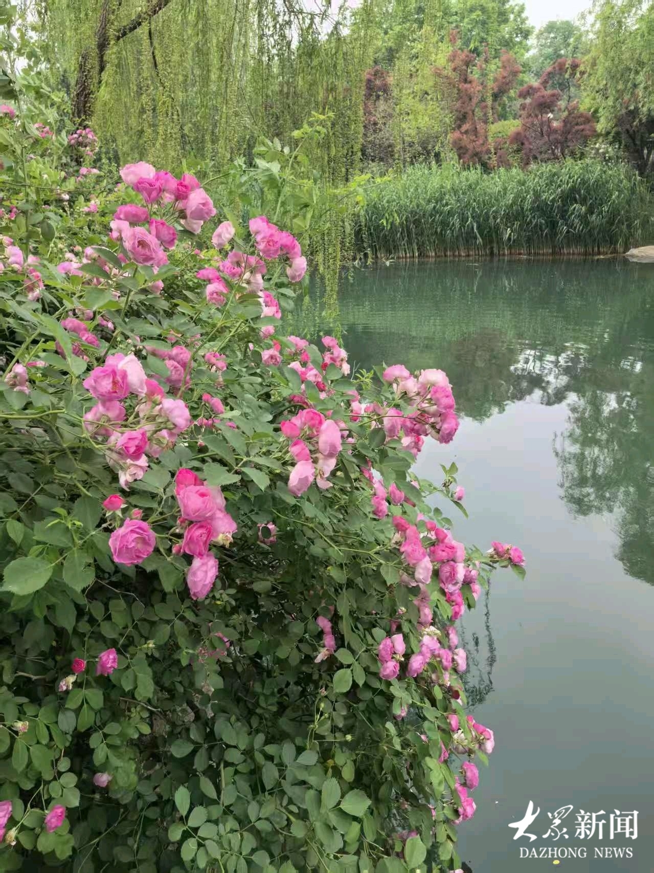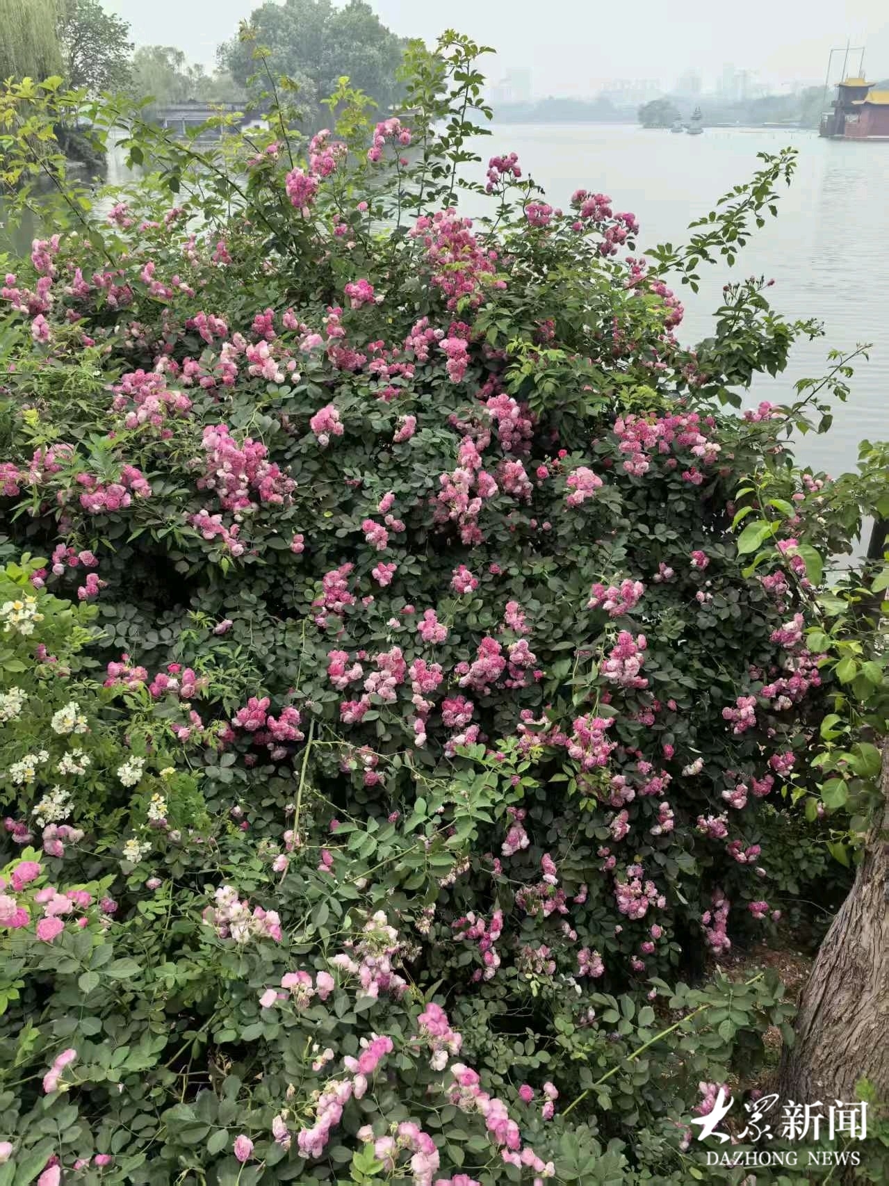 四月晴光,蔷薇怒放,湖波映石桥痕漾。近日,济南大明湖景区也披挂上了暮春的限定浪漫款——蔷薇花墙。凑近嗅香,蔷薇娇艳绽放,清香四溢。粉紫色的花朵层层叠叠,缀满枝头,如锦缎一般从桥头垂落,形成浪漫的花瀑长廊。又如美人笑靥般,与湖面相映成趣,美到窒息了!(大众新闻记者梁利杰摄影:殷玉国)