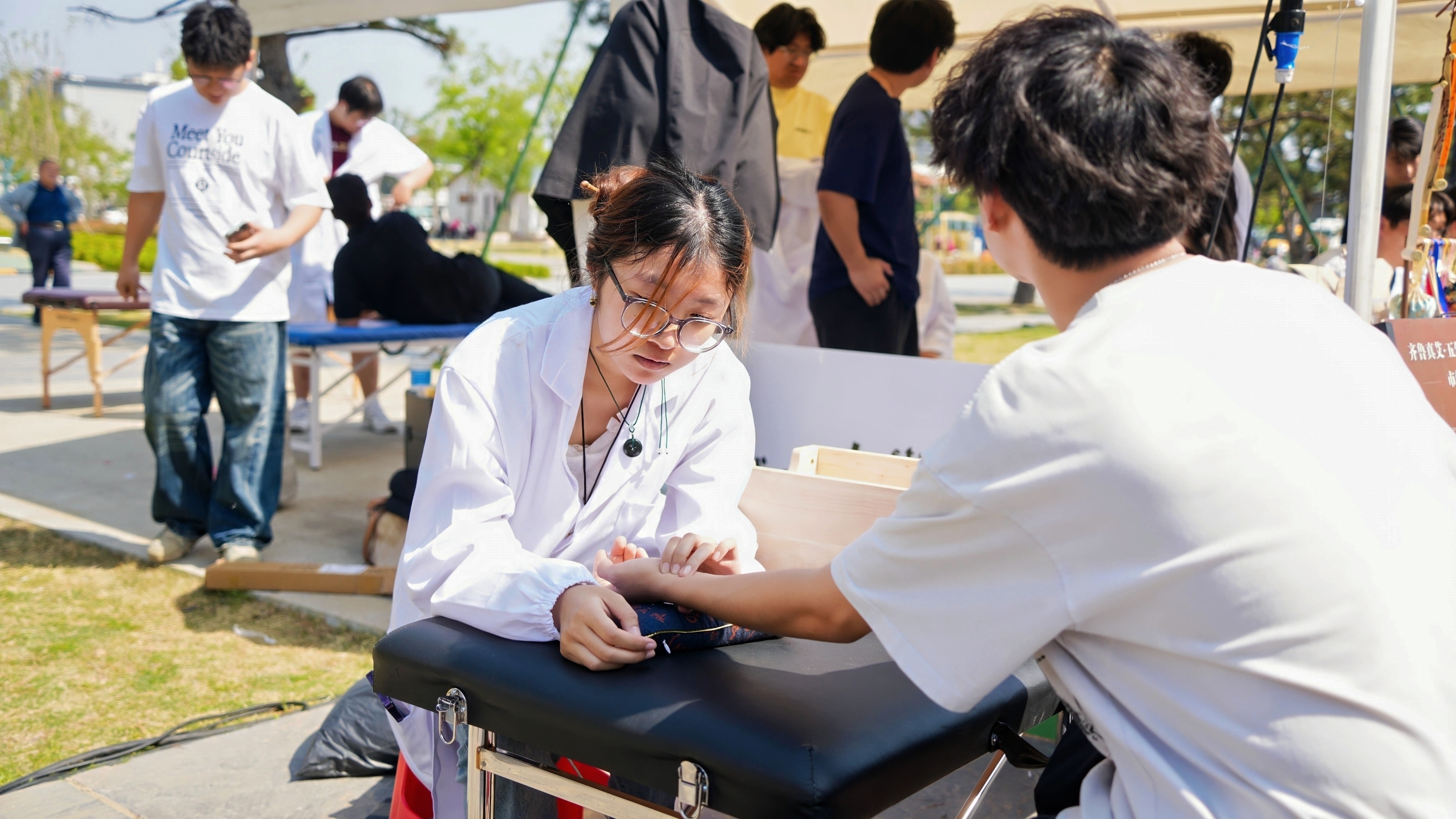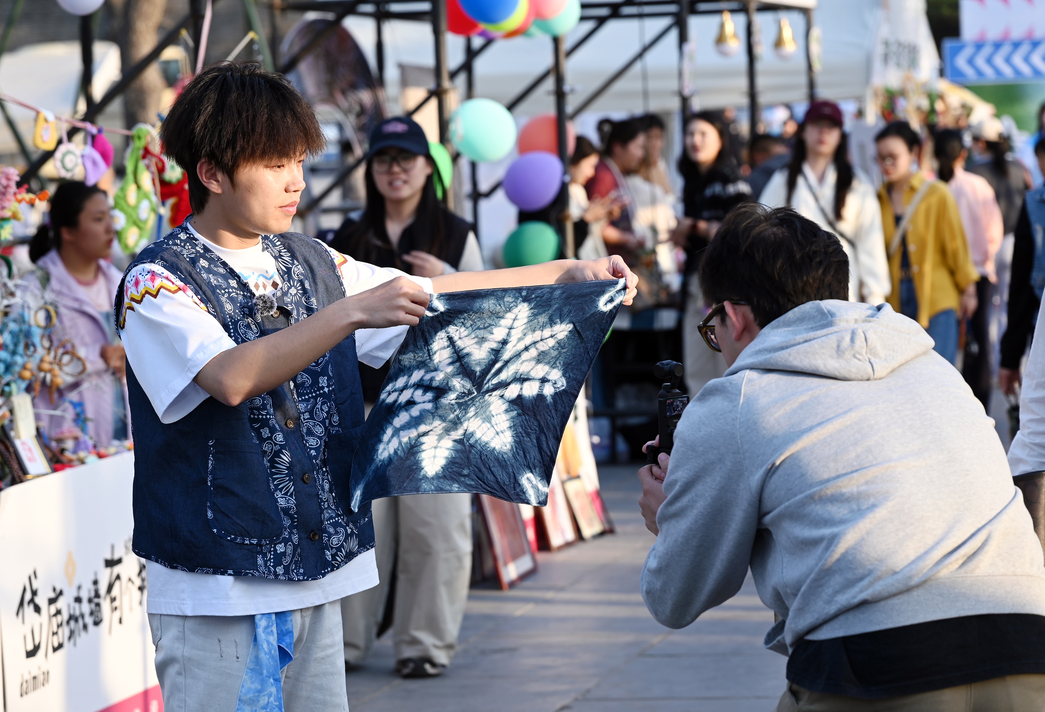 目光所及,市集上大学生们搭起的摊位琳琅满目,中医药养生、国风服饰、传统美食……既是大学生将书本知识转化为实践成果的“练兵场”,也是文化创意反哺城市发展的窗口。