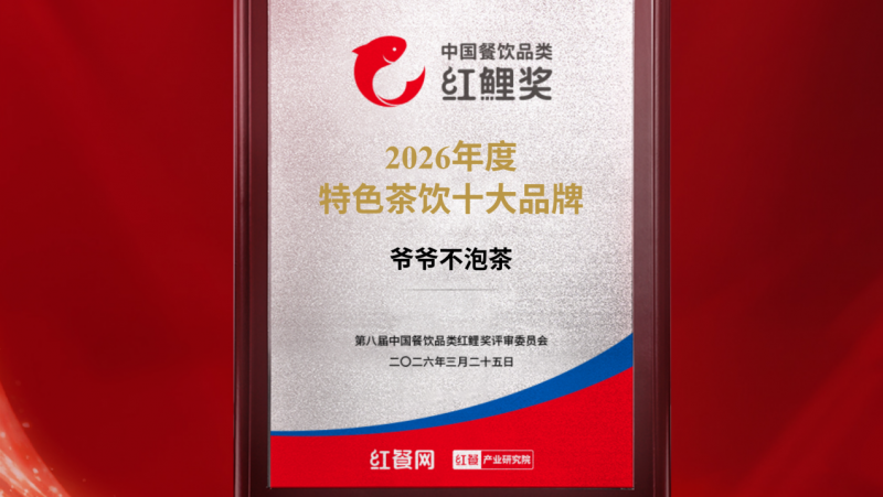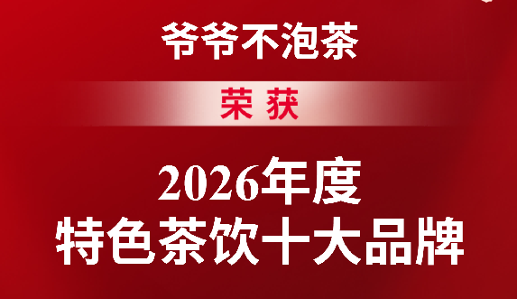 2026年3月,在第八届中国餐饮品类红鲤奖评选中,爷爷不泡茶荣膺“特色茶饮十大品牌”。
