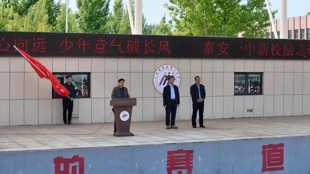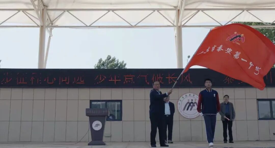 出征仪式上,学校党委书记华伟为大家授旗,副校长高广东作动员讲话,党委委员刘善昌鸣响发令枪,征程正式开始。