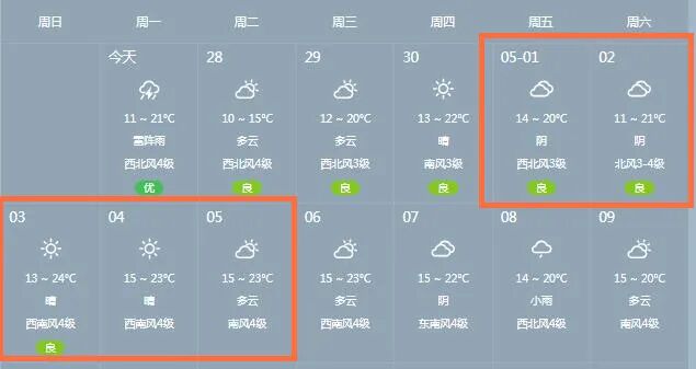 天气预报显示,“五一”期间,威海以多云、晴天为主,适合出行,出行请注意安全、小心慢行。
