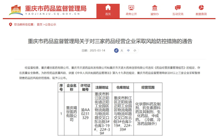 顶风违规,无视监管禁令:早在2025年3月,重庆市药监局就因该公司存在重大质量安全隐患,依法采取暂停销售药品的风险防控措施。但噶世医药无视监管权威,在管控期间持续销售药品,属于典型的“屡禁不止、顶风作案”,主观恶意极强。