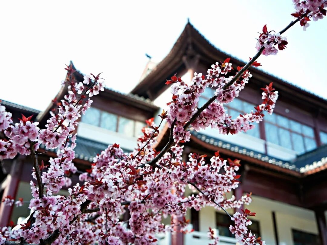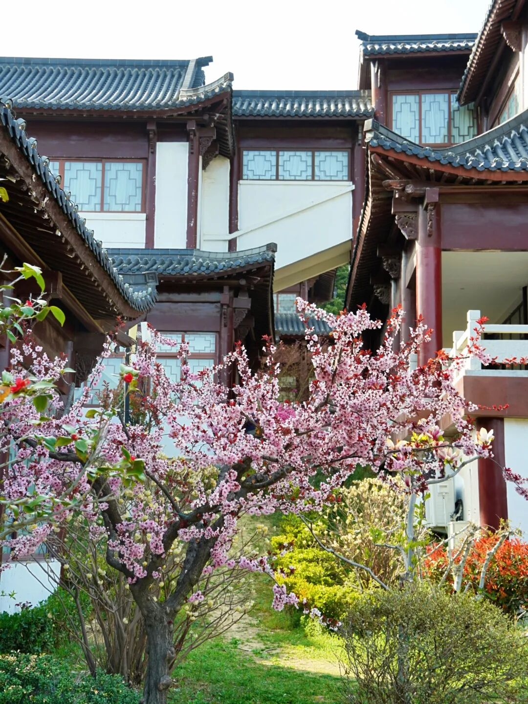 梅花清雅的花瓣缀于枝头,暗香浮动,为整个景区添了几分柔情。