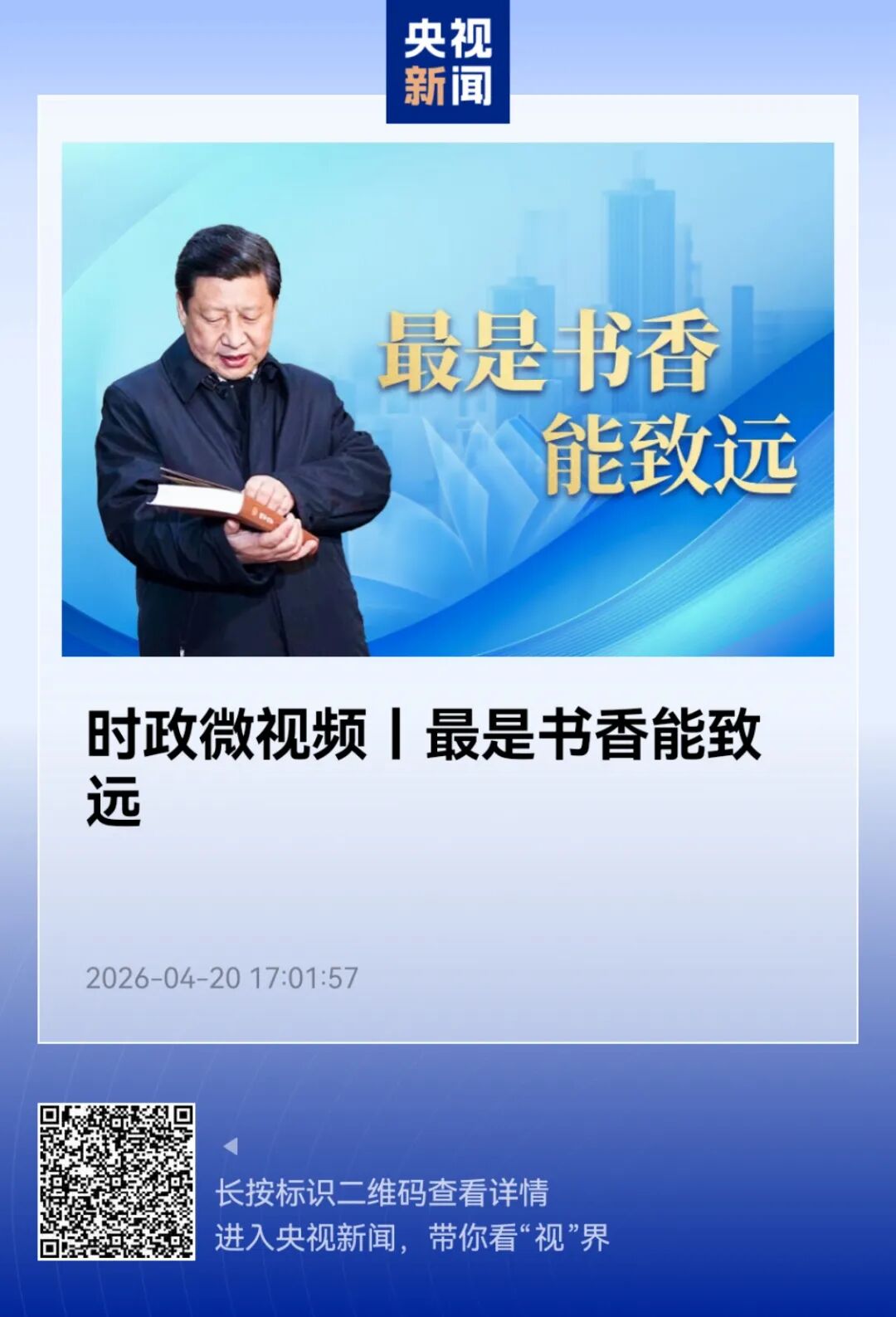 中央广播电视总台:《时政微视频丨最是书香能致远》(专题)