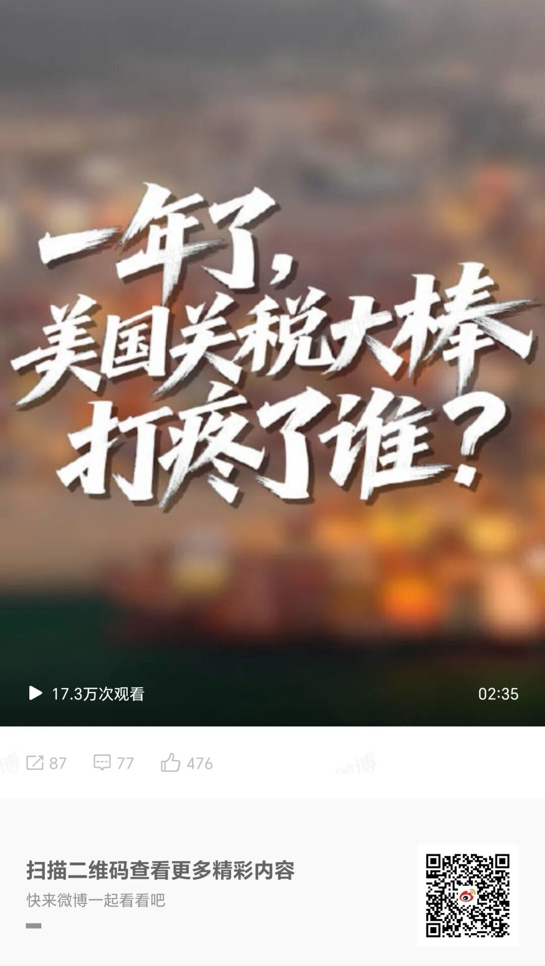 人民日报:《一年了,美国关税大棒打疼了谁?》(短视频新闻)