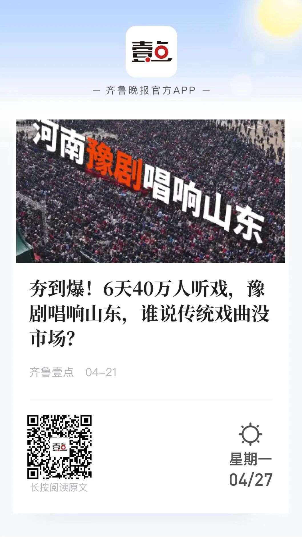 齐鲁晚报:《夯到爆!6天40万人听戏,豫剧唱响山东,谁说传统戏曲没市场?》(通讯)