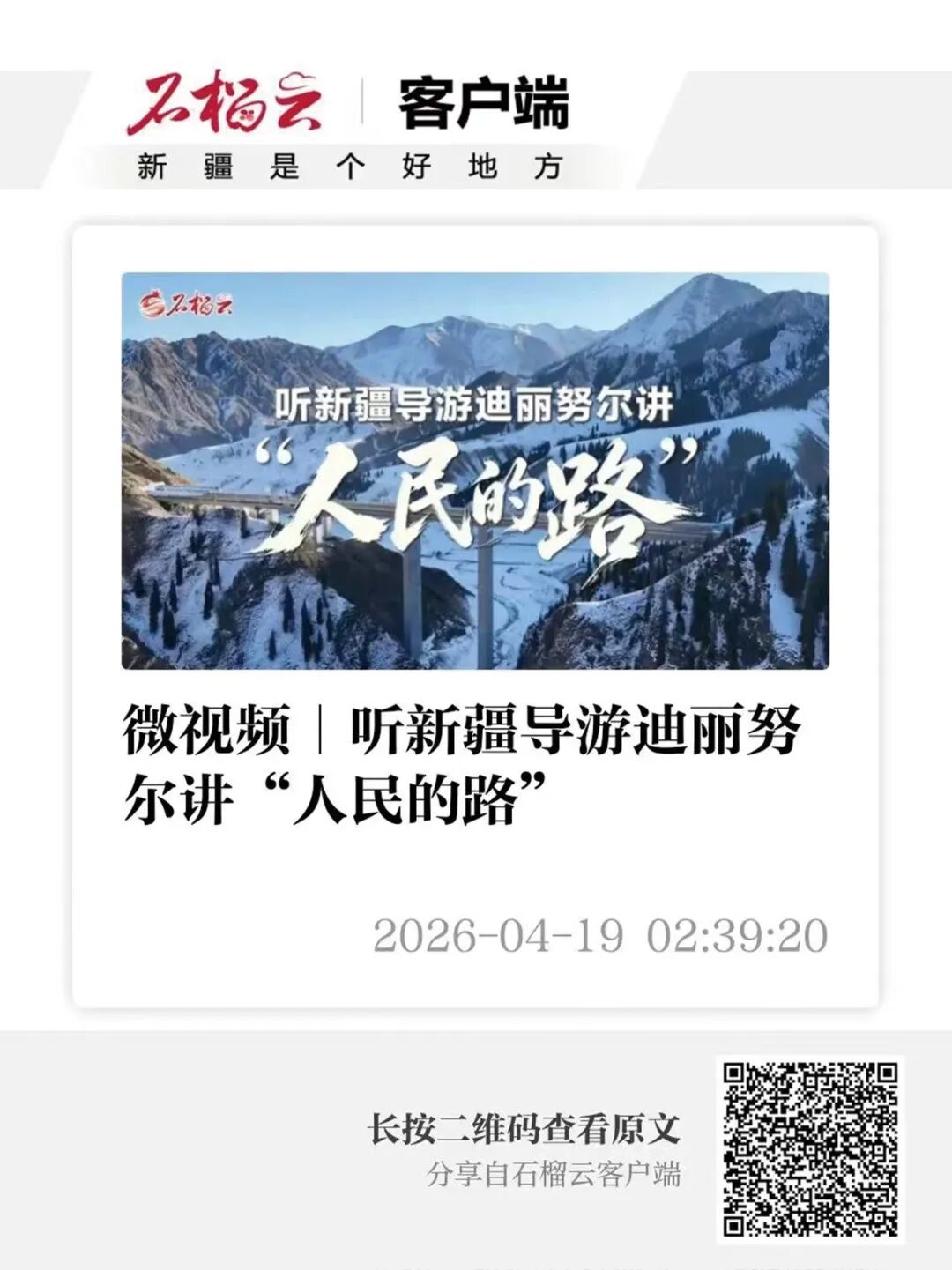 新疆日报社:《微视频 | 听新疆导游迪丽努尔讲“人民的路”》(新闻访谈)