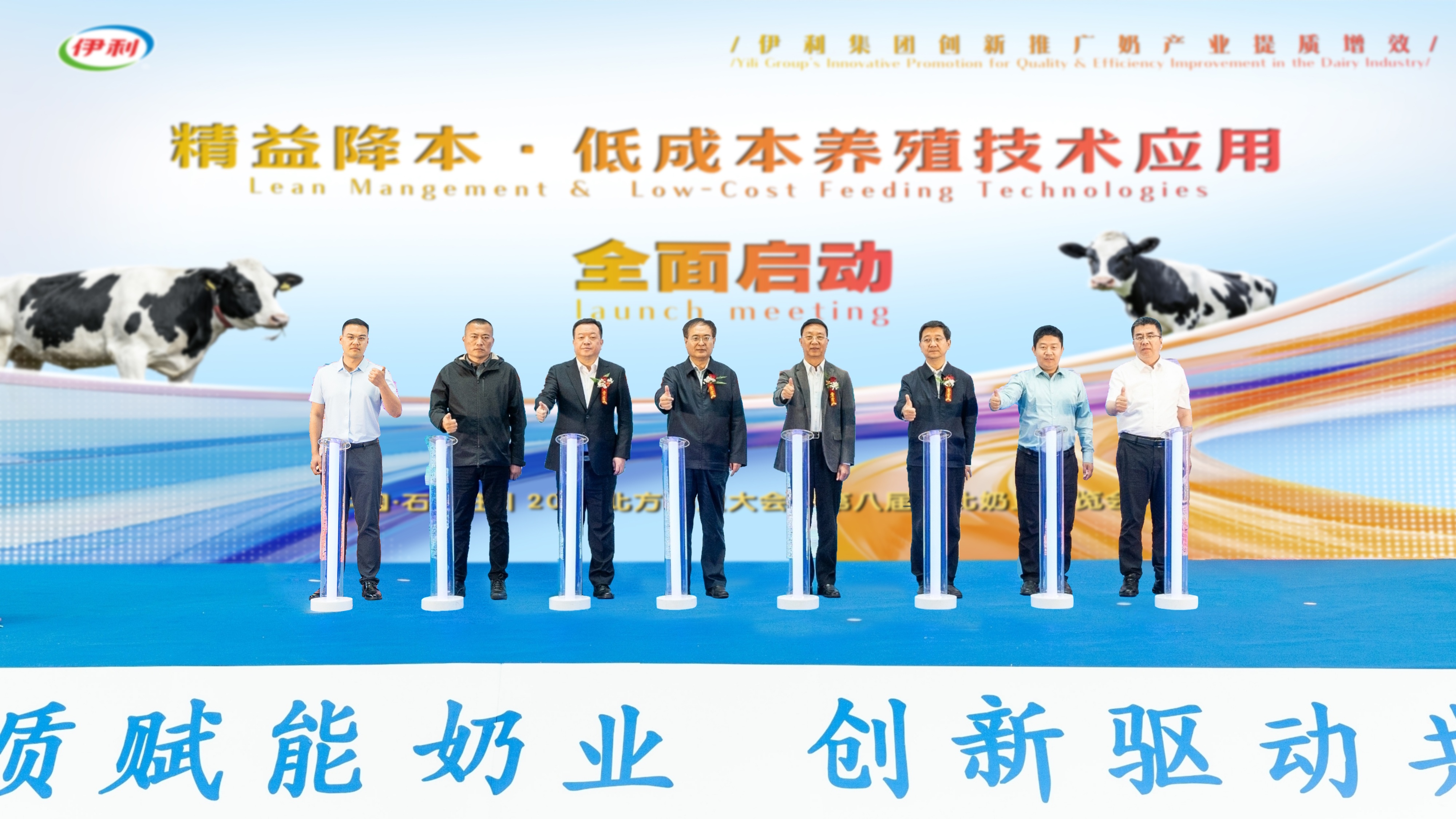 中国奶业协会副会长兼秘书长尹彦勋、河北省农业农村厅原一级巡视员、河北省奶业协会副会长顾传学、河北省农业农村厅畜牧业处处长陈东来、伊利集团副总裁陆新东、伊利奶牛科学研究院营养中心负责人李俊良、伊利集团南部奶源大区负责人王虎及伊利集团合作牧场代表保定市诚信自然园养殖场负责人常鹏、怀安县绿原农牧业科技发展有限公司场长安述琛,共同见证了伊利集团精益降本·低成本养殖技术应用全面启动。