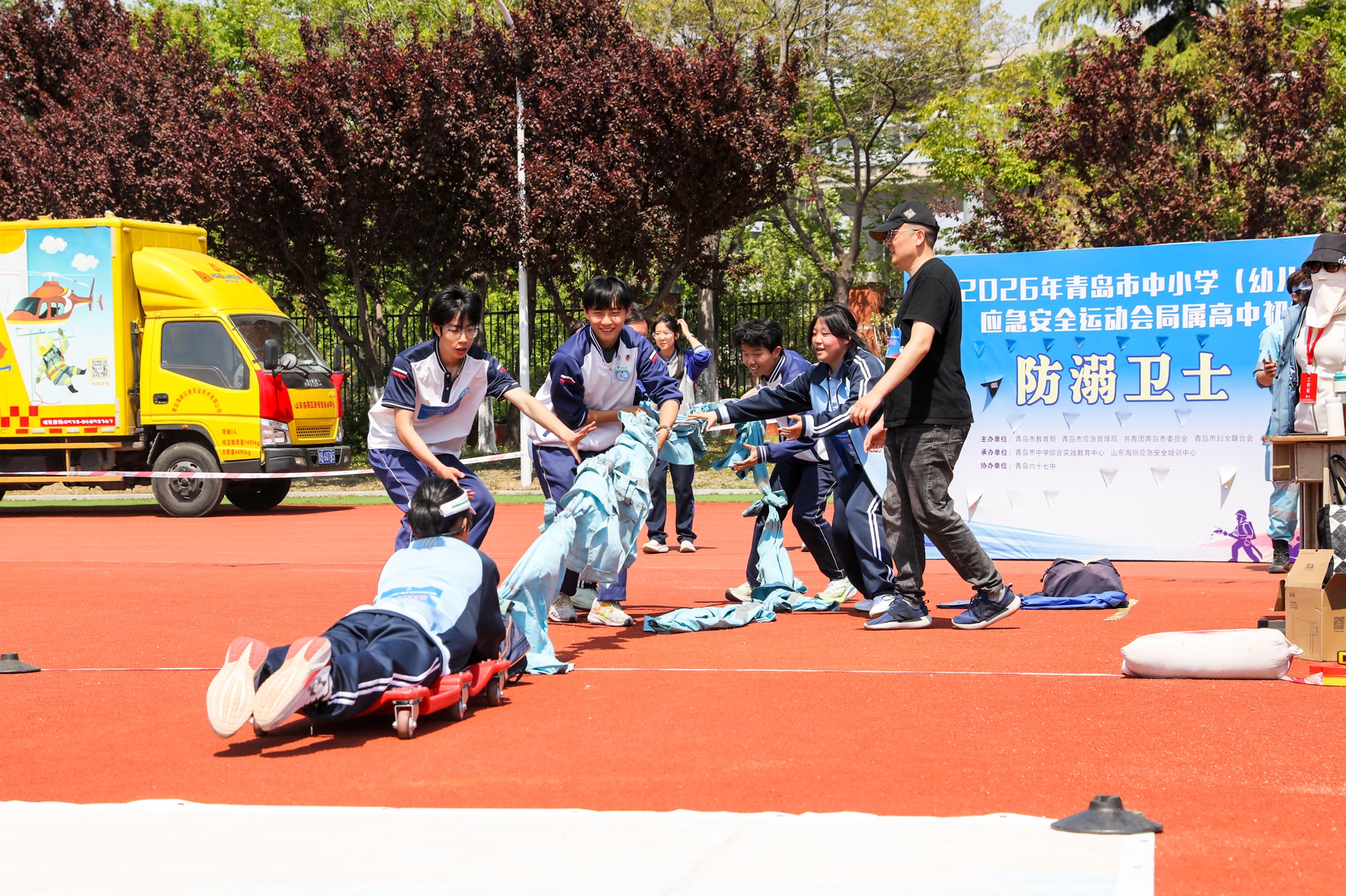 本次比赛由青岛市教育局、青岛市应急管理局、共青团青岛市委、青岛市妇女联合会、青岛市红十字会联合主办,青岛市中学综合实践教育中心、山东海丽应急安全培训中心承办,旨在通过“运动会”形式,将应急安全教育从课堂延伸到赛场,让学生在沉浸式体验中掌握逃生、避险、急救等关键技能,真正做到“人人讲安全、个个会应急”。