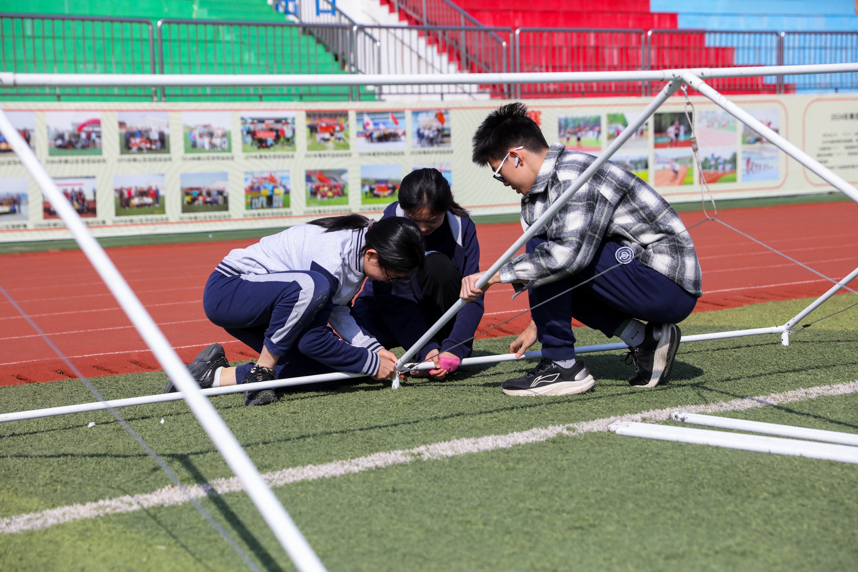“荒野求生”项目要求每队6人+1名教师(指挥不插手),限时20分钟完成野外取火和搭帐篷。青岛六十七中在帐篷搭建环节表现亮眼:哨响后六人迅速分工,3分钟立稳骨架,随后铺顶篷、插垂直杆、拉紧拉链、钉桩固定,全程分工科学,执行精准,团队协作范本。学会取火,学会搭建避难所——这些看似“原始”的本领,正是灾害来临时最可靠的底气。