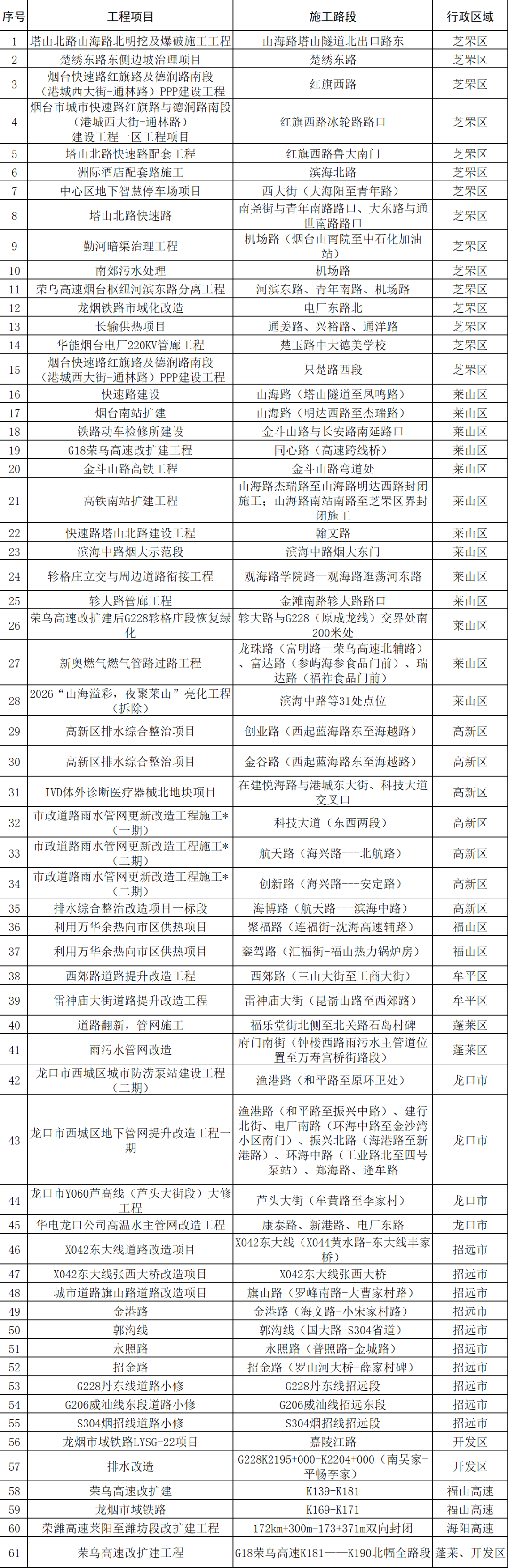 国道204(福山段、栖霞段)、国道206(栖霞段、招远段、莱州段)、国道228(开发区段、招远段)、省道206(牟平段)、省道209(栖霞段)、省道210(福山段、海阳段)、省道213(招远段)、省道308(福山段)、省道306(海阳段)可能会出现拥堵缓行问题。同时受高速公路通行免费政策影响,预计4月30日下午、5月1日上午、5月5日下午各条主要高速公路通道和收费站周边道路将迎来大流量。